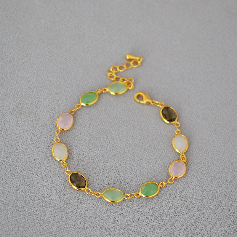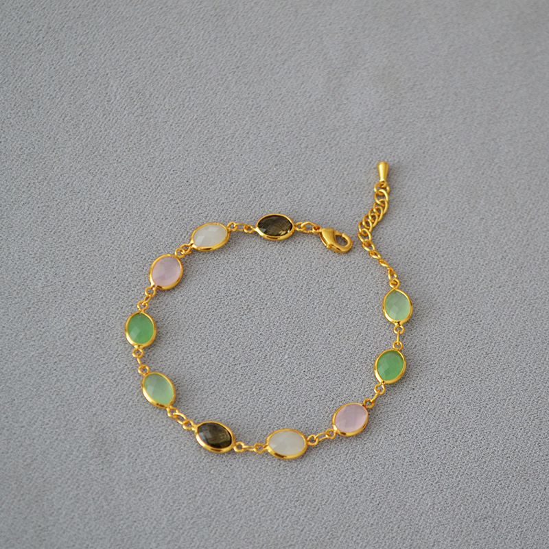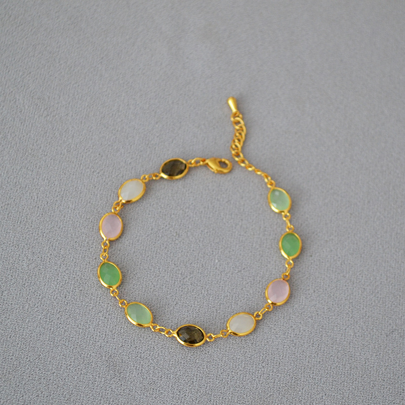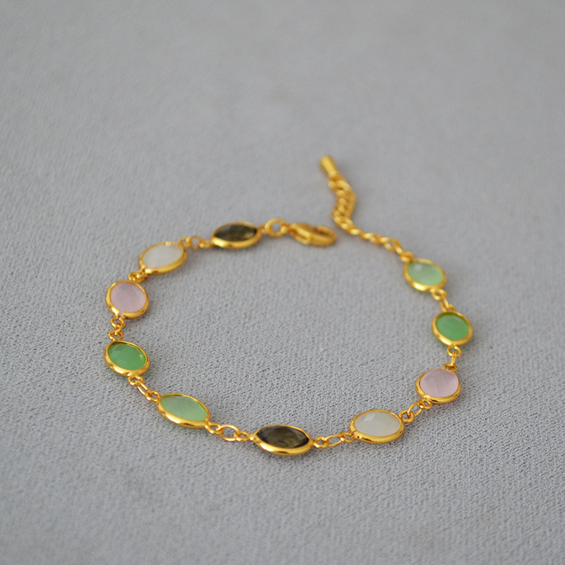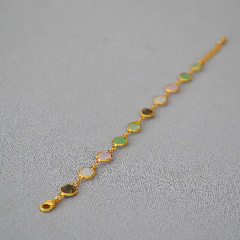 Estilo coreano de moda dulce latón chapado en oro tallado cristal jade textura nicho personalidad temperamento pulsera