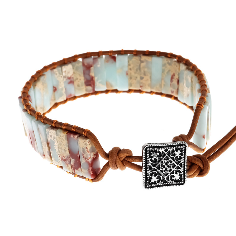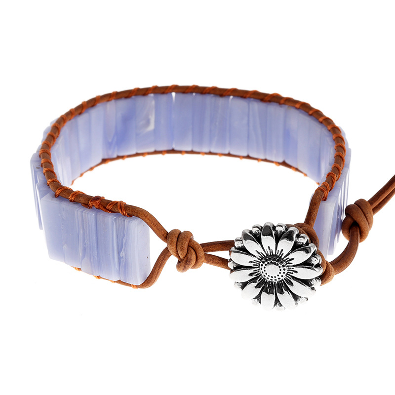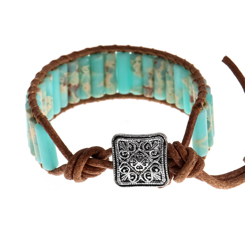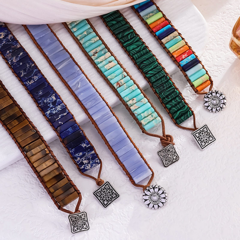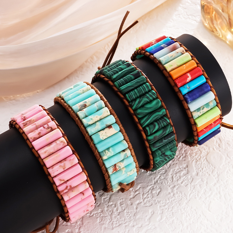 Longrui Amazon joyería transfronteriza imitación piedra natural pulsera de cuerda de cuero tejida a mano joyería de mano creativa bohemia