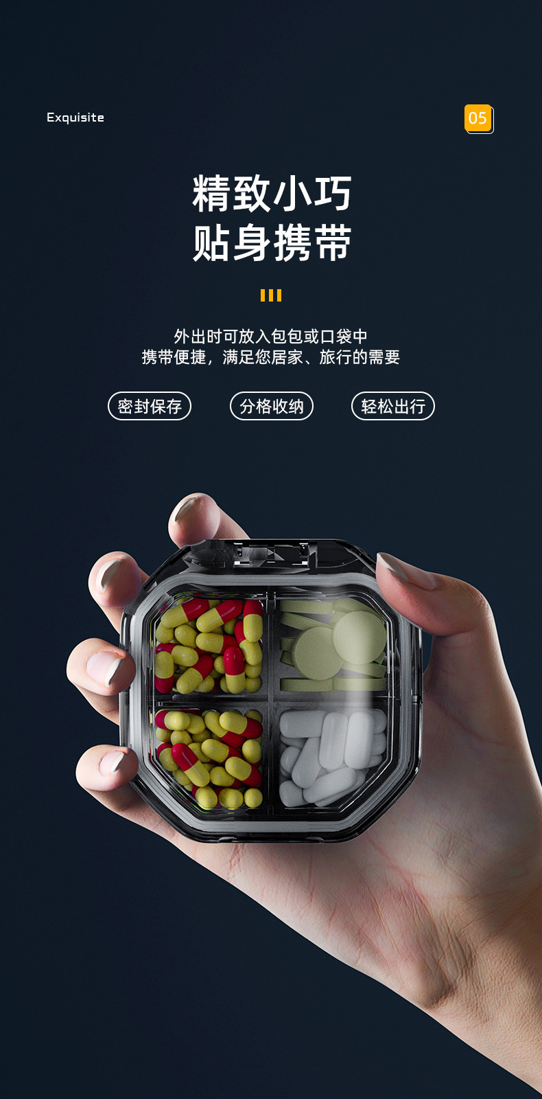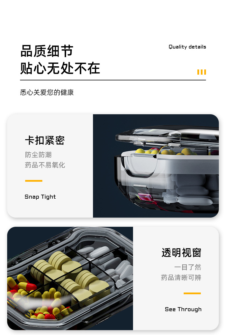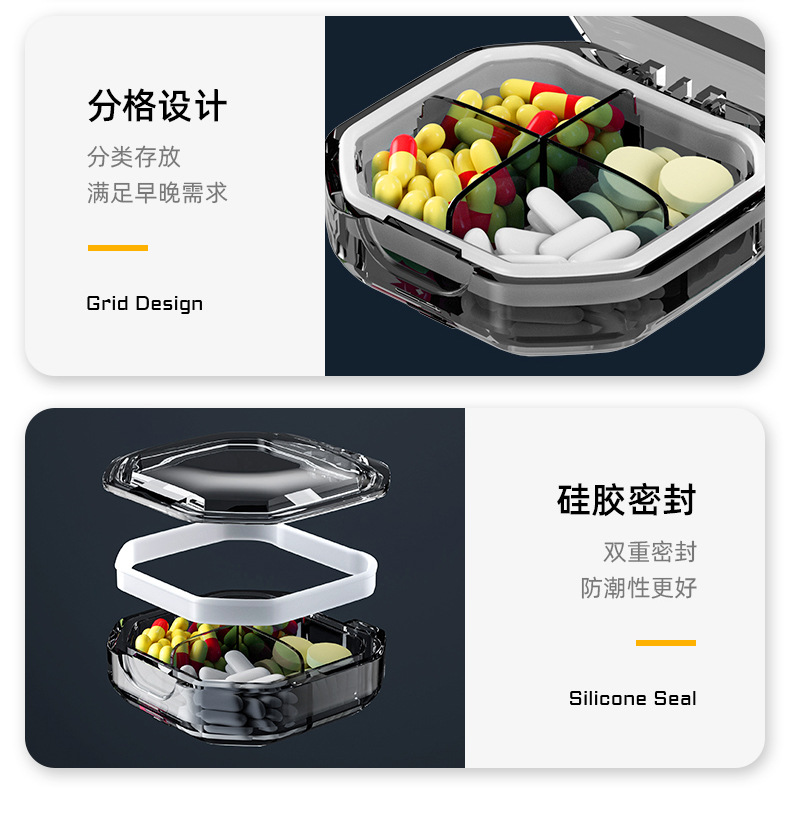 Estilo nórdico portátil mini compartimento sellado gran capacidad una semana mañana y noche tableta cápsula embalaje caja de la medicina