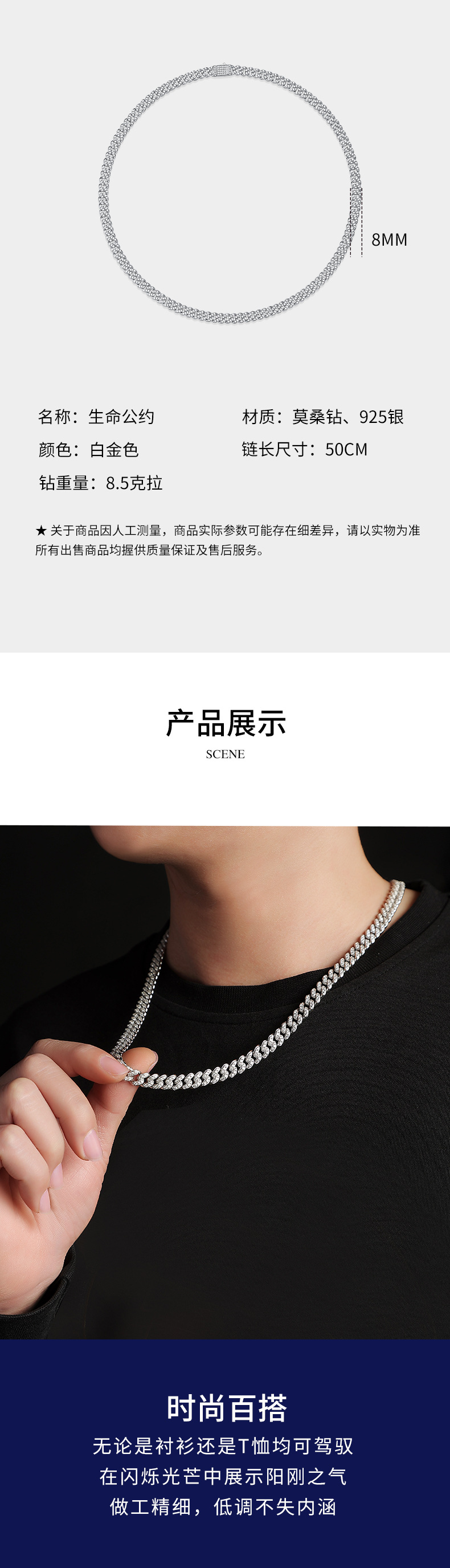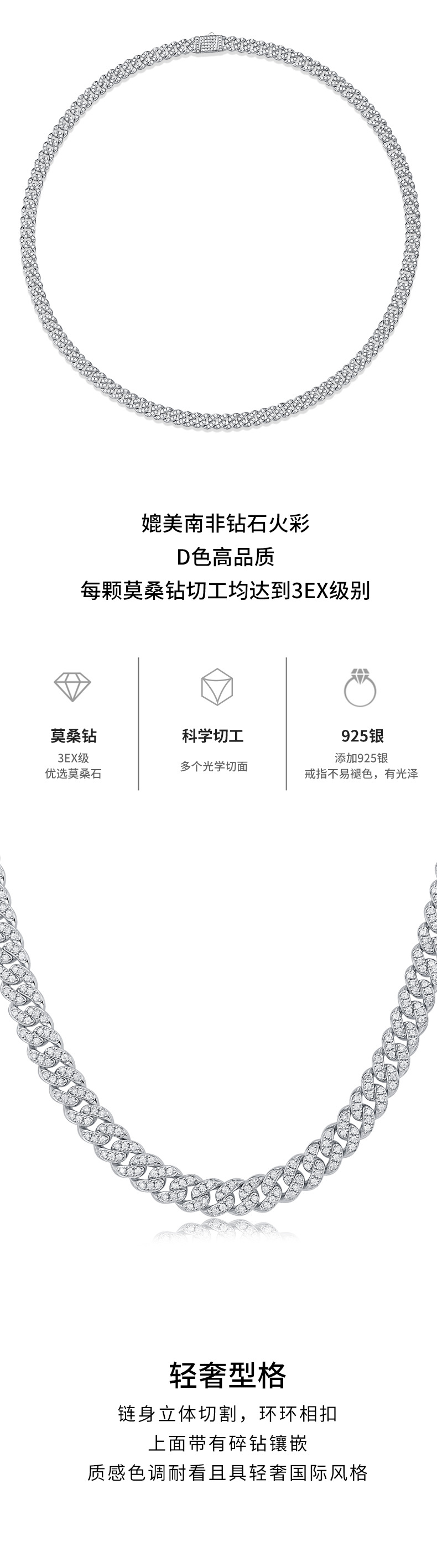 | Collar de la Convención de la Vida | Hip Hop Diamond Silver Cadena cubana Collar de diamantes Moussan Collar cubano de diamantes Moussan |