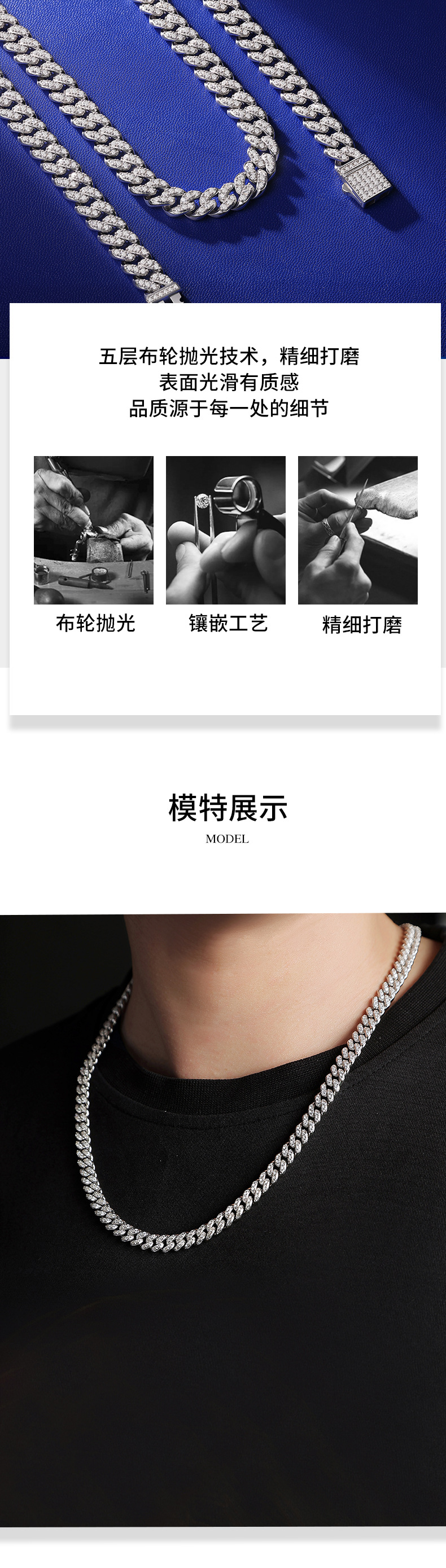 Moissanita cadena cubana plata collar chapado en oro venta caliente transfronteriza nueva cadena de clavícula artificial fuente de fábrica al por mayor