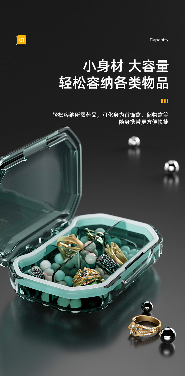 Caja de la píldora de embalaje portátil caja de la píldora comida sellada a prueba de humedad Mini caja de la píldora portátil caja de la píldora para siete días a la semana
