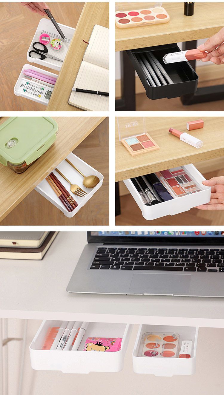 Nueva mesa de pasta oculta fijo cuadrado Oficina papelería cosméticos pluma cajón caja almacenamiento