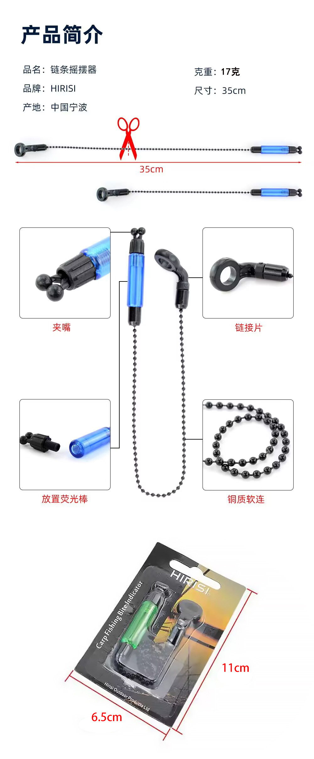 Componente de alarma de pesca con luz intermitente, tensor de picada de pez estilo europeo, swinger de cadena suave simple para pesca de carpas europeas