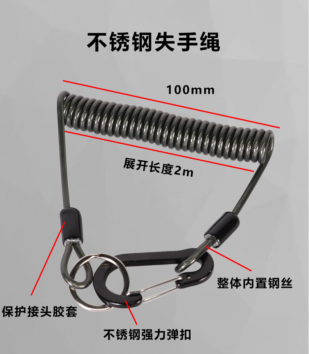 Luya equipo de pesca dispositivo de control de peces cuerda perdida de alambre de acero cuerda de resorte retráctil automática barco de pesca accesorios de pesca hebilla colgante cuerda anti-perdida