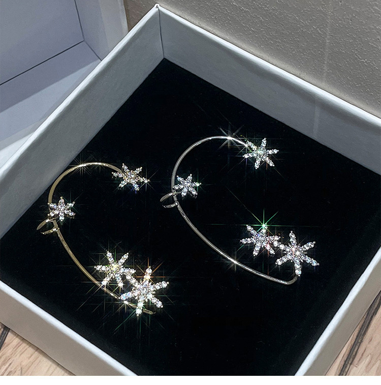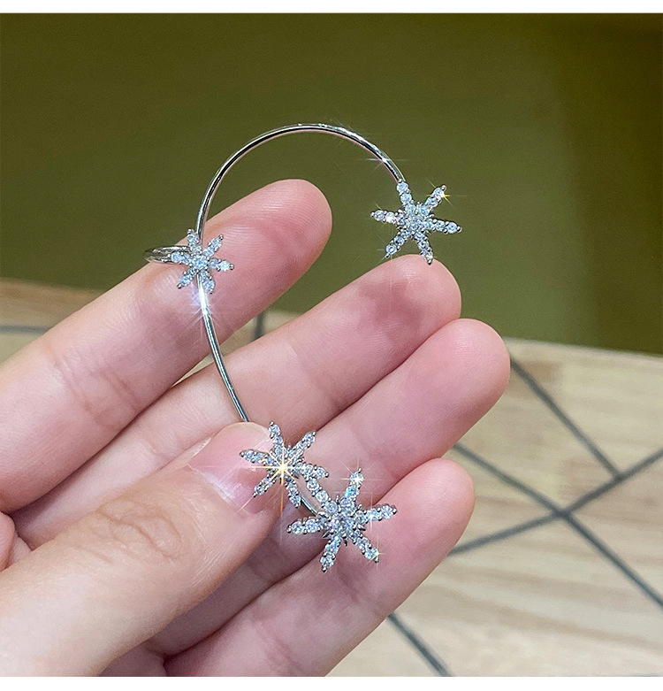 Clip de oreja de copo de nieve de estilo europeo y americano sin personalidad perforada de alta gama temperamento de moda diseño de nicho sentido gancho para la oreja clip de hueso para la oreja hembra