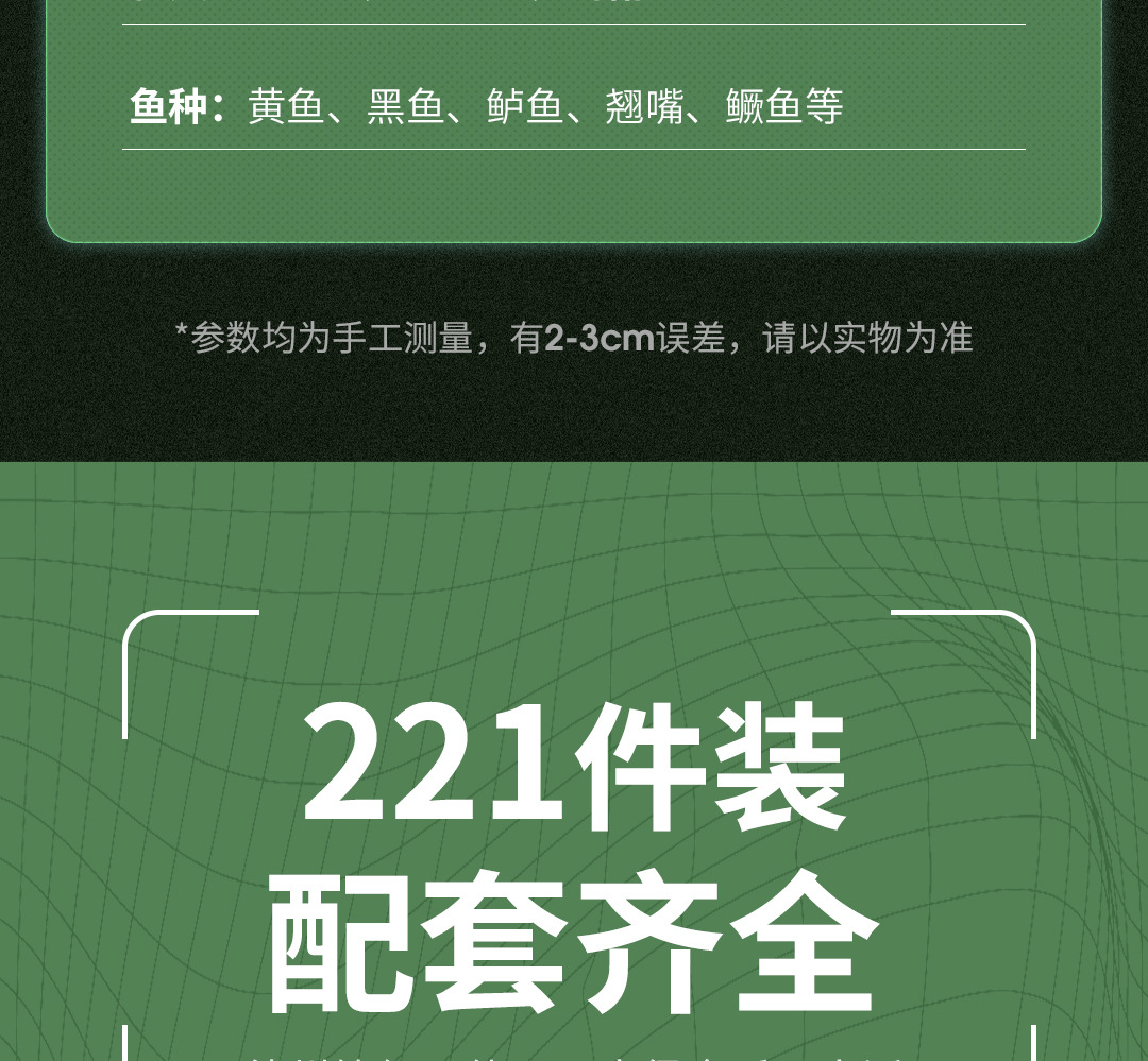 | Especificaciones | 221 PC traje de grupo de pesca de Texas |