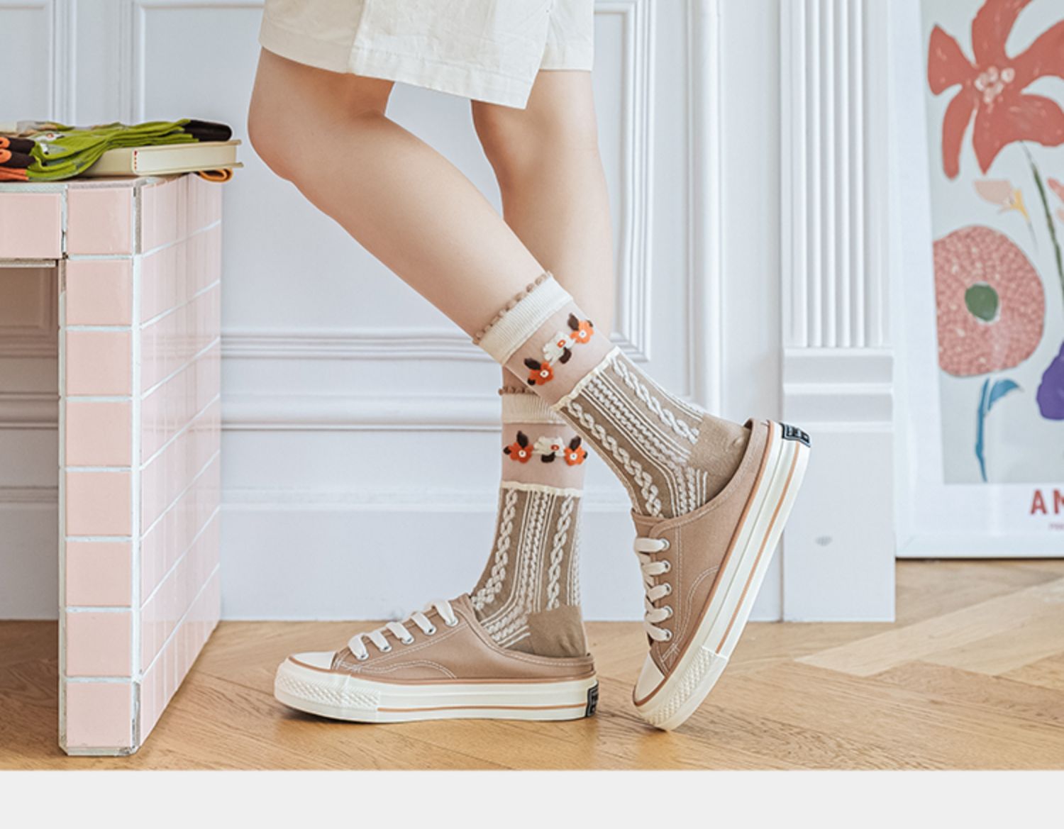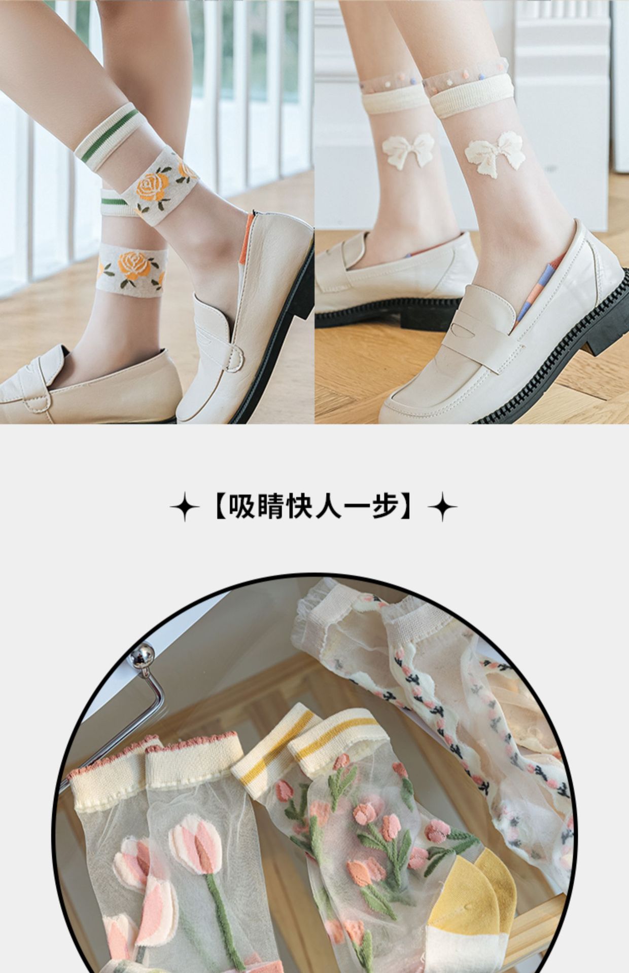 Algodón inferior transpirable vidrio seda medias Calcetines encaje Mujer personalidad japonesa ins marea caseína