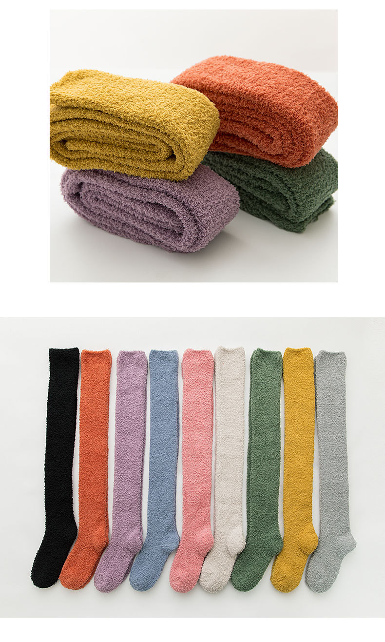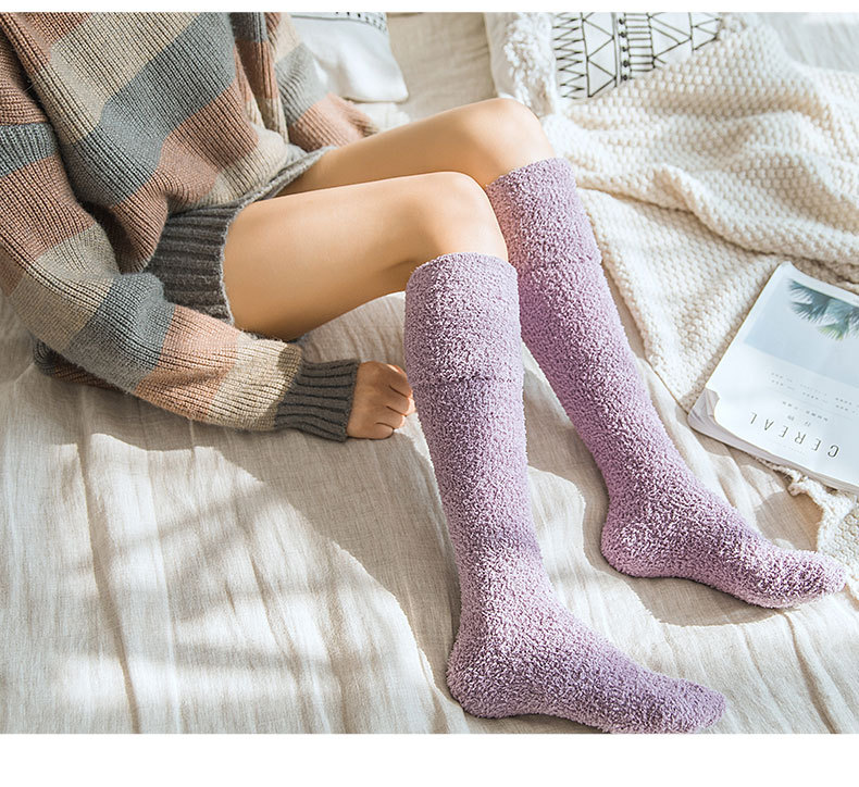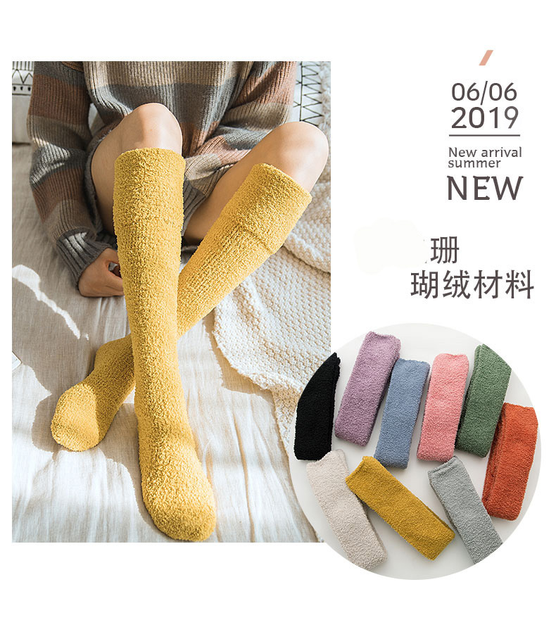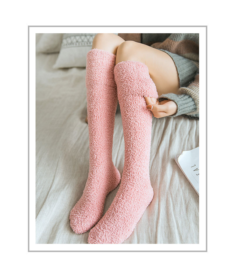 Calcetines de terciopelo de coral calcetines de piso sin pelusa Otoño e Invierno nuevos calcetines de pantorrilla sobre la rodilla engrosados calcetines deportivos largos y cálidos