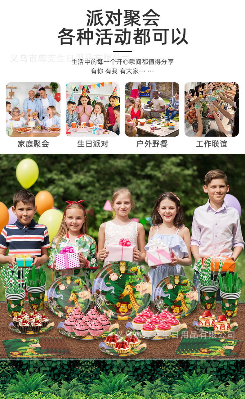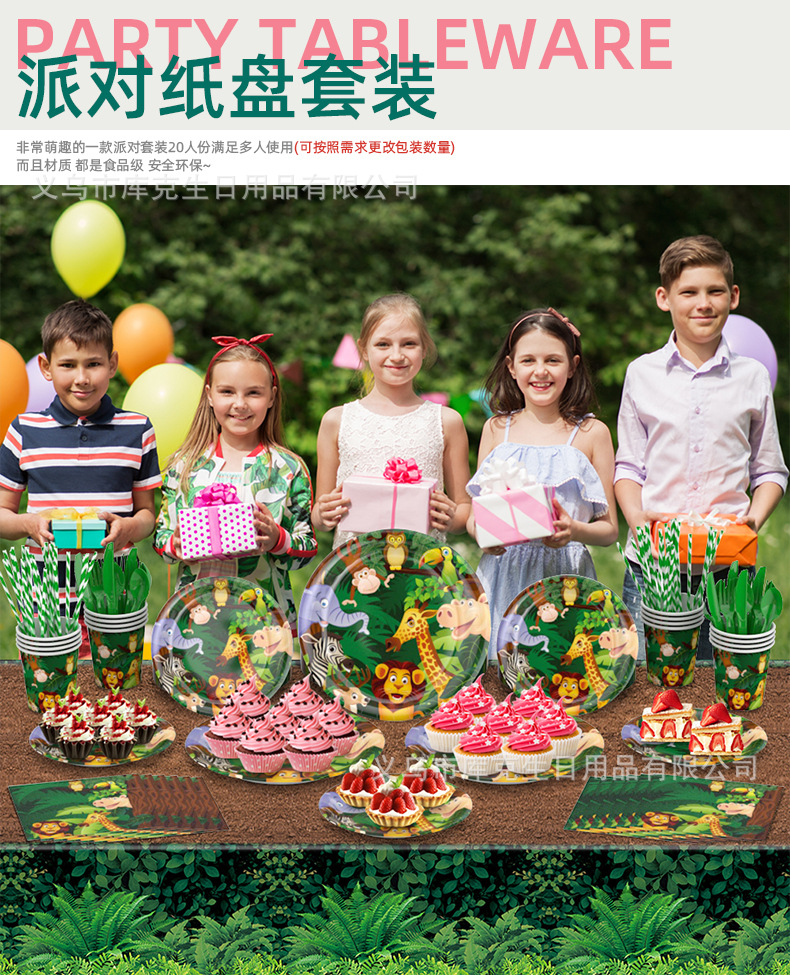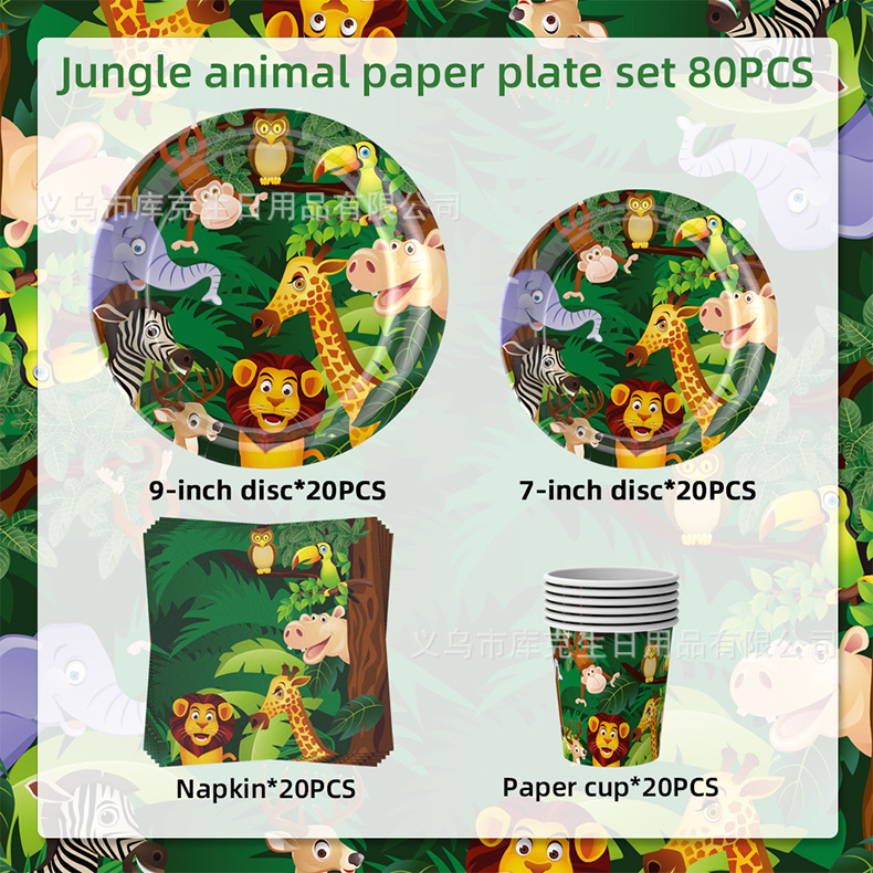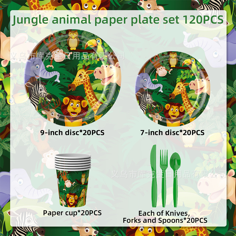 Amazon fabricantes nuevo animal selva fiesta de cumpleaños los niños suministros sombrero desechable plato tire bandera Decoración