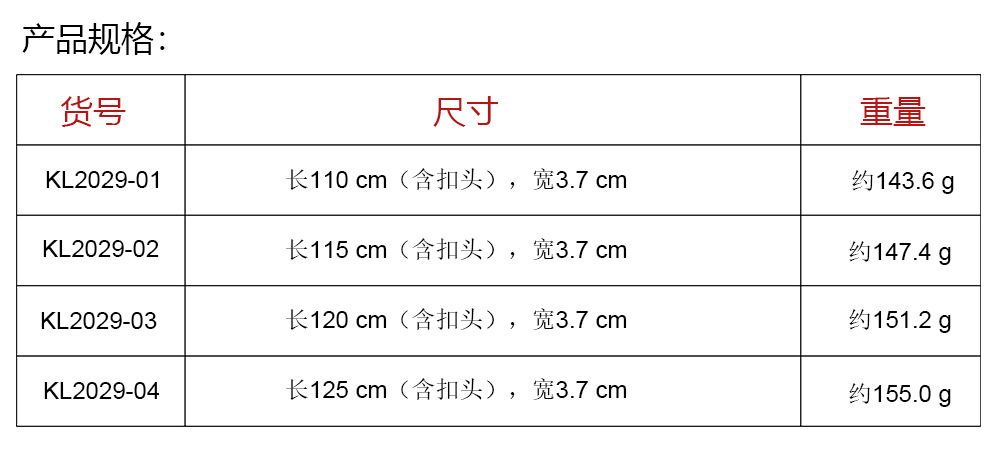 | Longitud (cm) | 110cm,115cm,120cm,125cm |