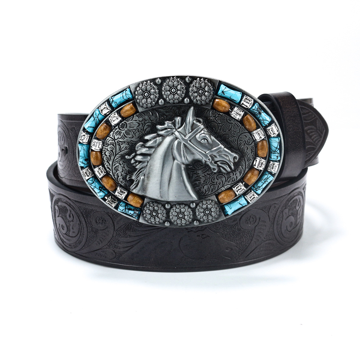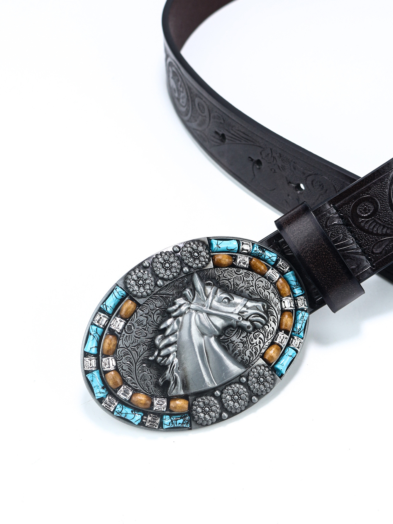 Cross-Border hombres de mezclilla occidental arnés de cinturón Amazon moda retro juventud retro cabeza de caballo punk cinturón