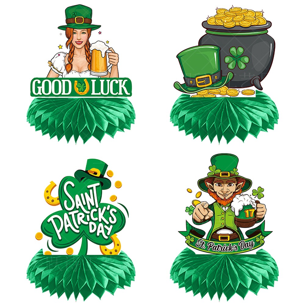 Nuevo día de San Patricio decoración de escritorio fiesta irlandesa trébol oro moneda panal Decoración
