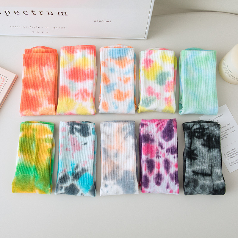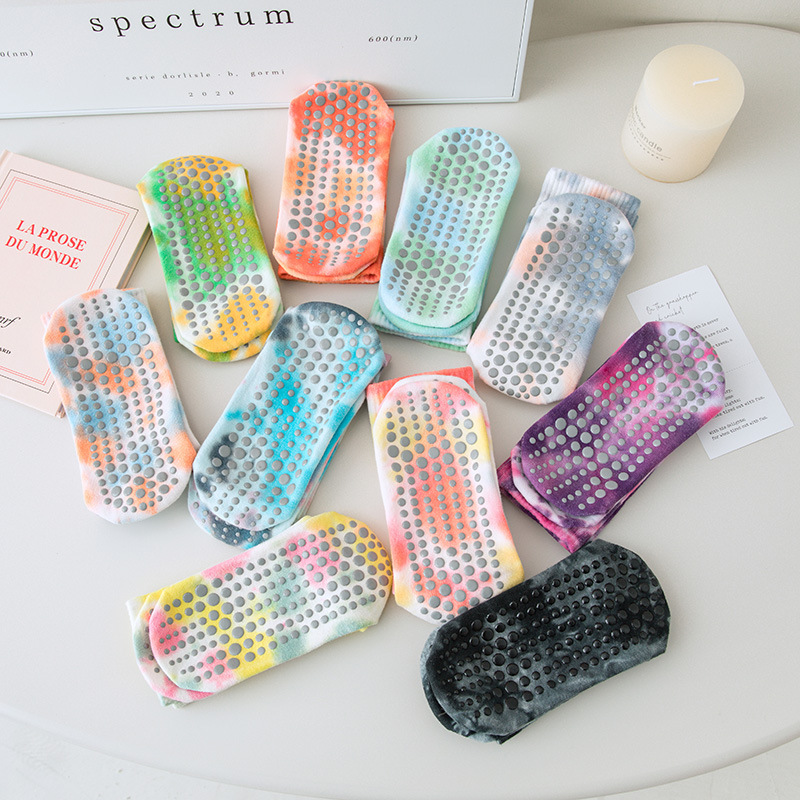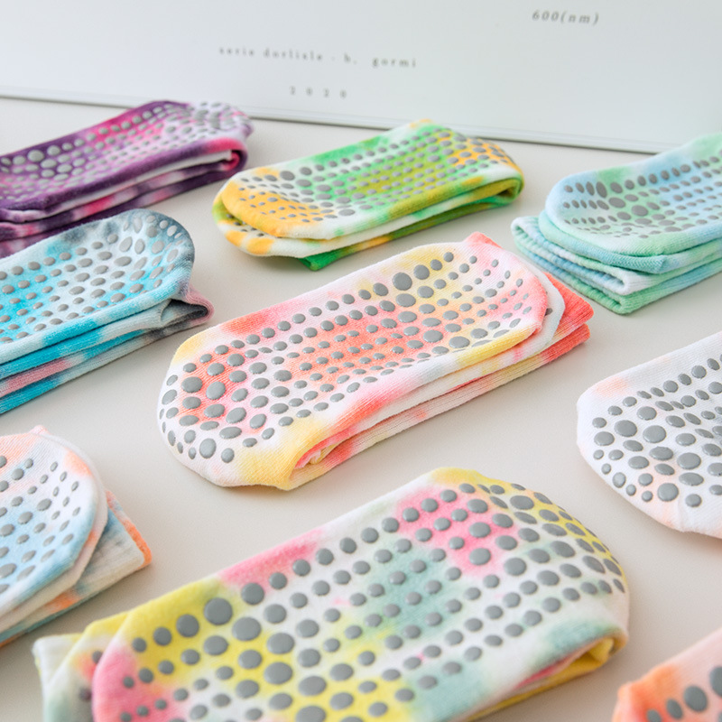 Calcetines teñidos de corbata de primavera y verano de las mujeres calcetines de media pantorrilla de algodón ins moda profesional fitness deportes Pilates antideslizantes calcetines de yoga