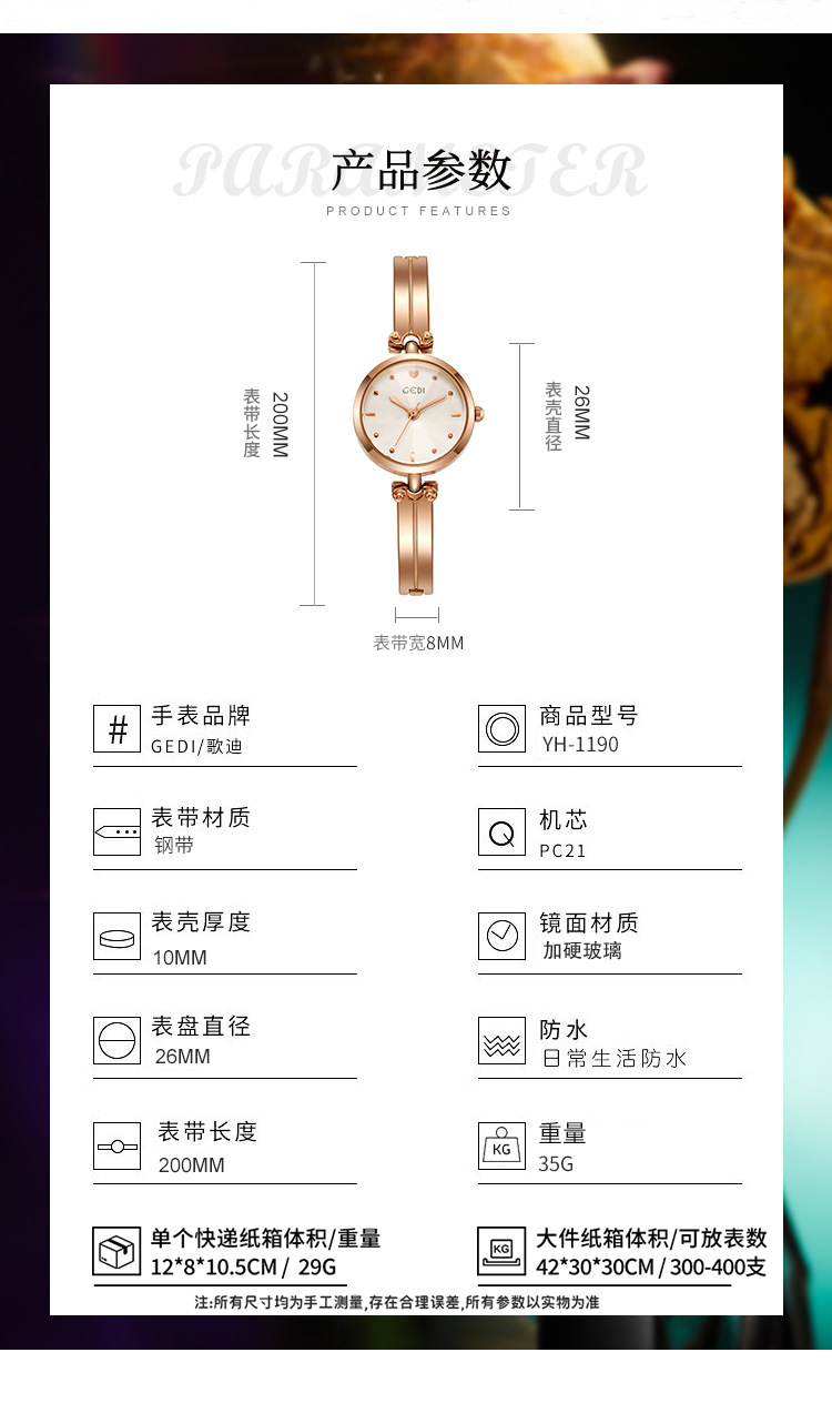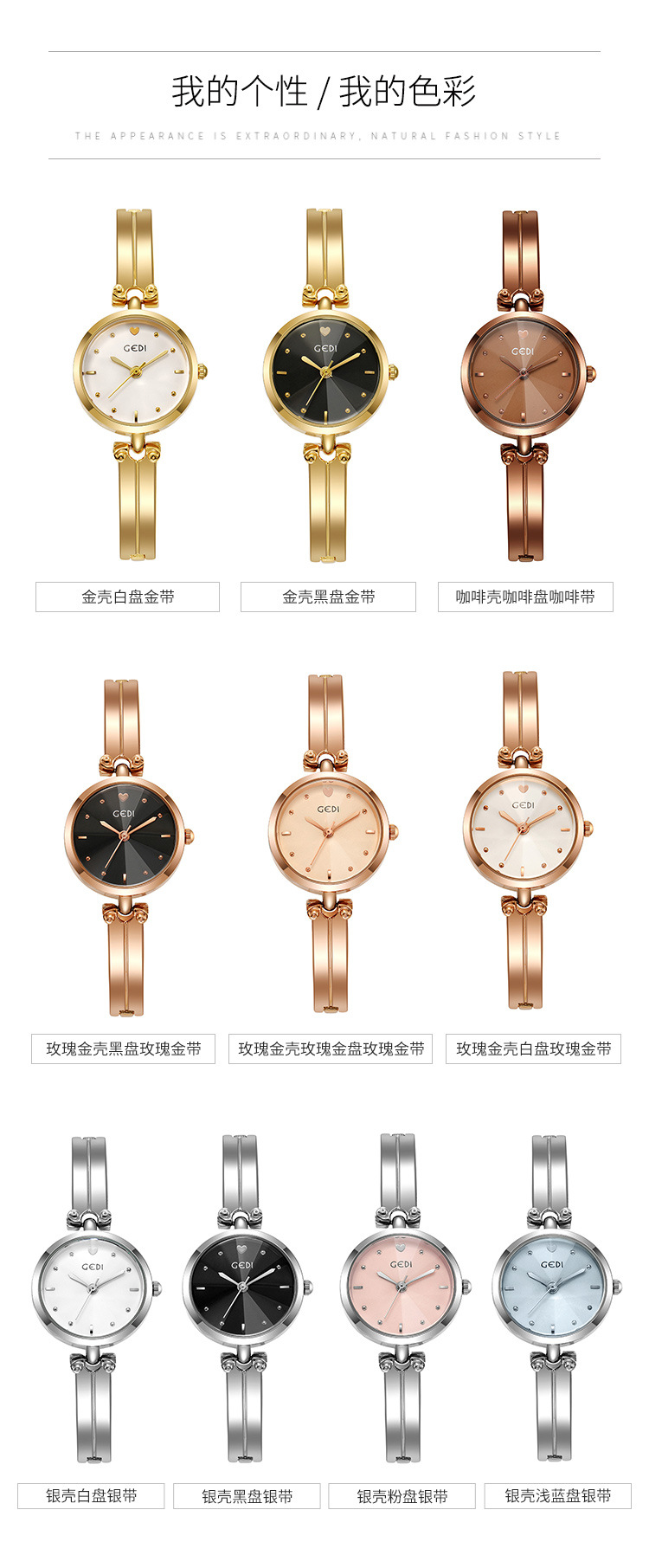 Gedi nicho de alta calidad de aleación de reloj estudiante partido exquisito medio-antiguo reloj de cuarzo reloj de pulsera impermeable de las mujeres al por mayor