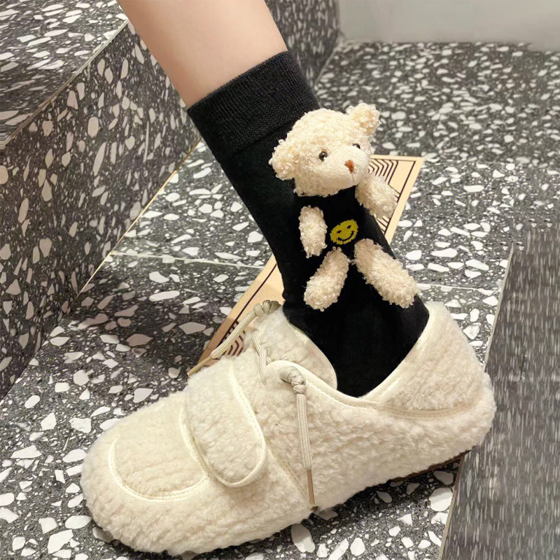 Calcetines de mujer primavera y verano color caramelo tridimensional nueva moda calcetines europeos mujeres ins lindo oso tridimensional calcetines estilo coreano