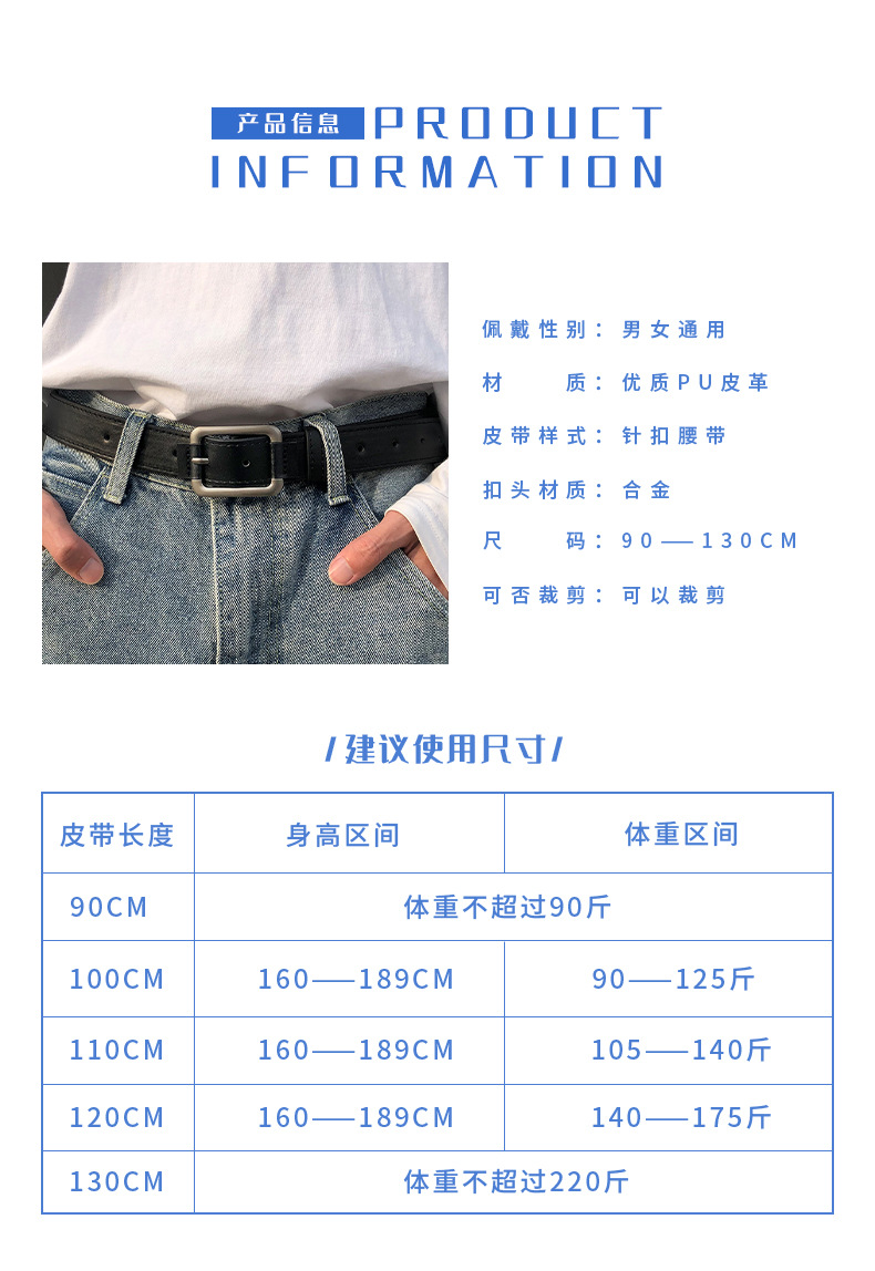 Nuevo cinturón de hombre estilo coreano moda simple pantalones cinturón estilo de calle Internet rojo mismo estilo ins Hong Kong estilo personalizado pantalones de hombre cinturón