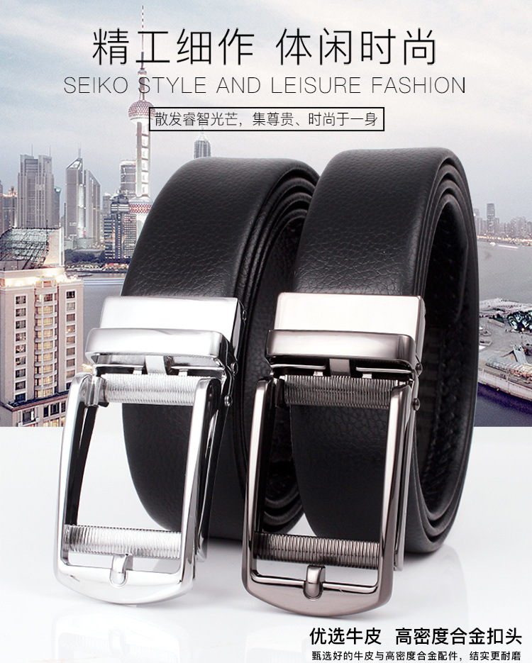 Cinturón de cuero de los hombres falso hebilla automática cinturón de negocios casual clip cinturón de fábrica al por mayor en stock