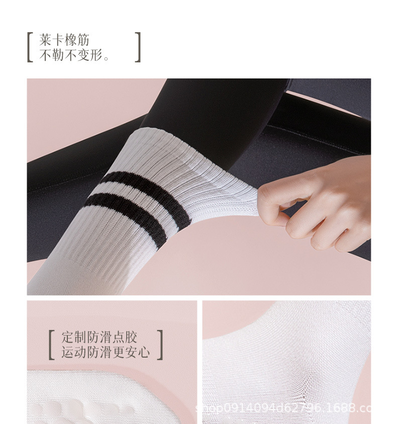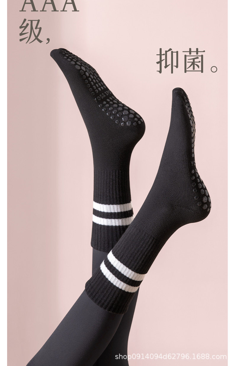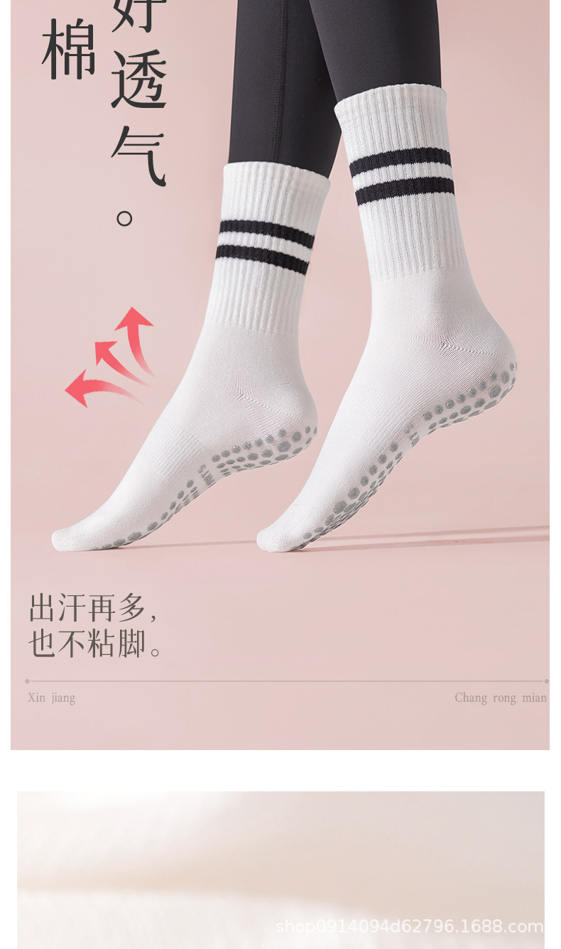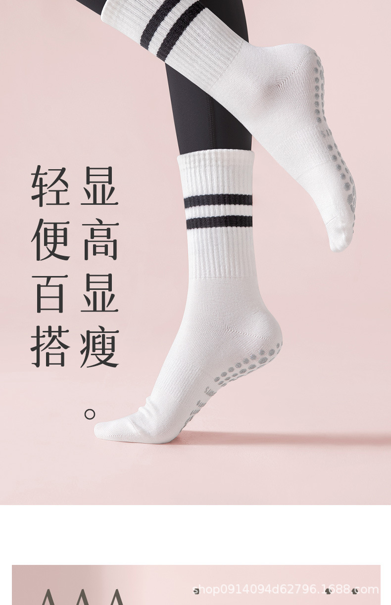 Calcetines de yoga nuevos de otoño para mujer, calcetines de algodón hasta la pantorrilla, calcetines deportivos de tubo medio corto con silicona antideslizante, calcetines de suelo blancos y negros