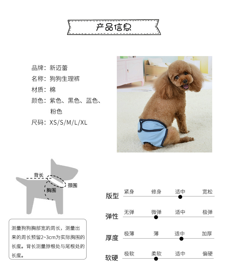 Pantalones fisiológicos de velcro para mascotas pantalones sanitarios para perros grandes, medianos y pequeños pantalones de seguridad para perros pantalones menstruales Teddy anti-acoso