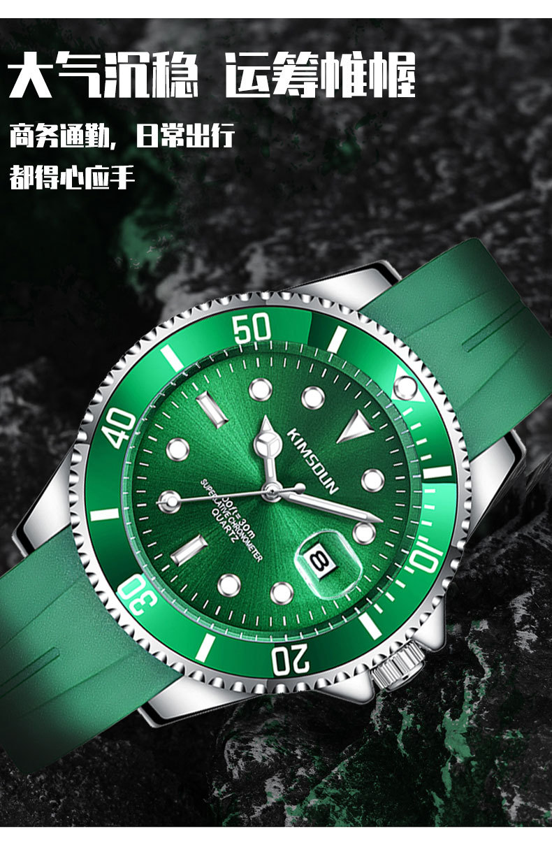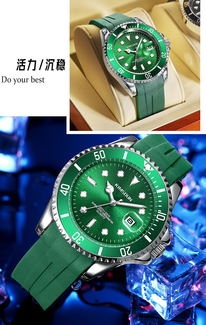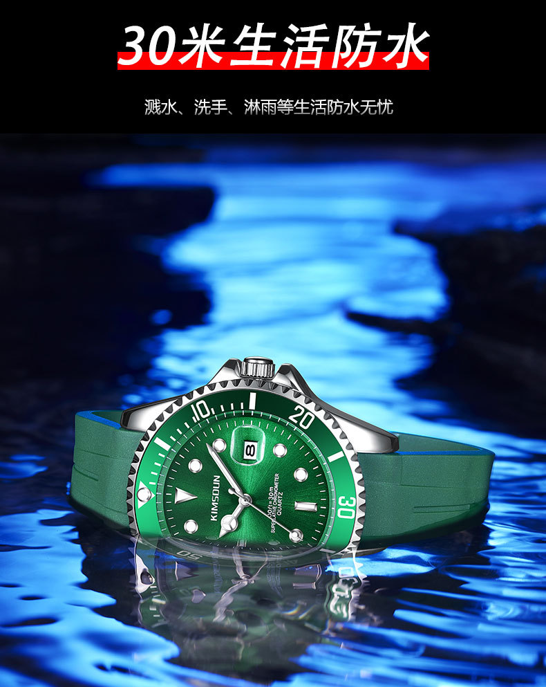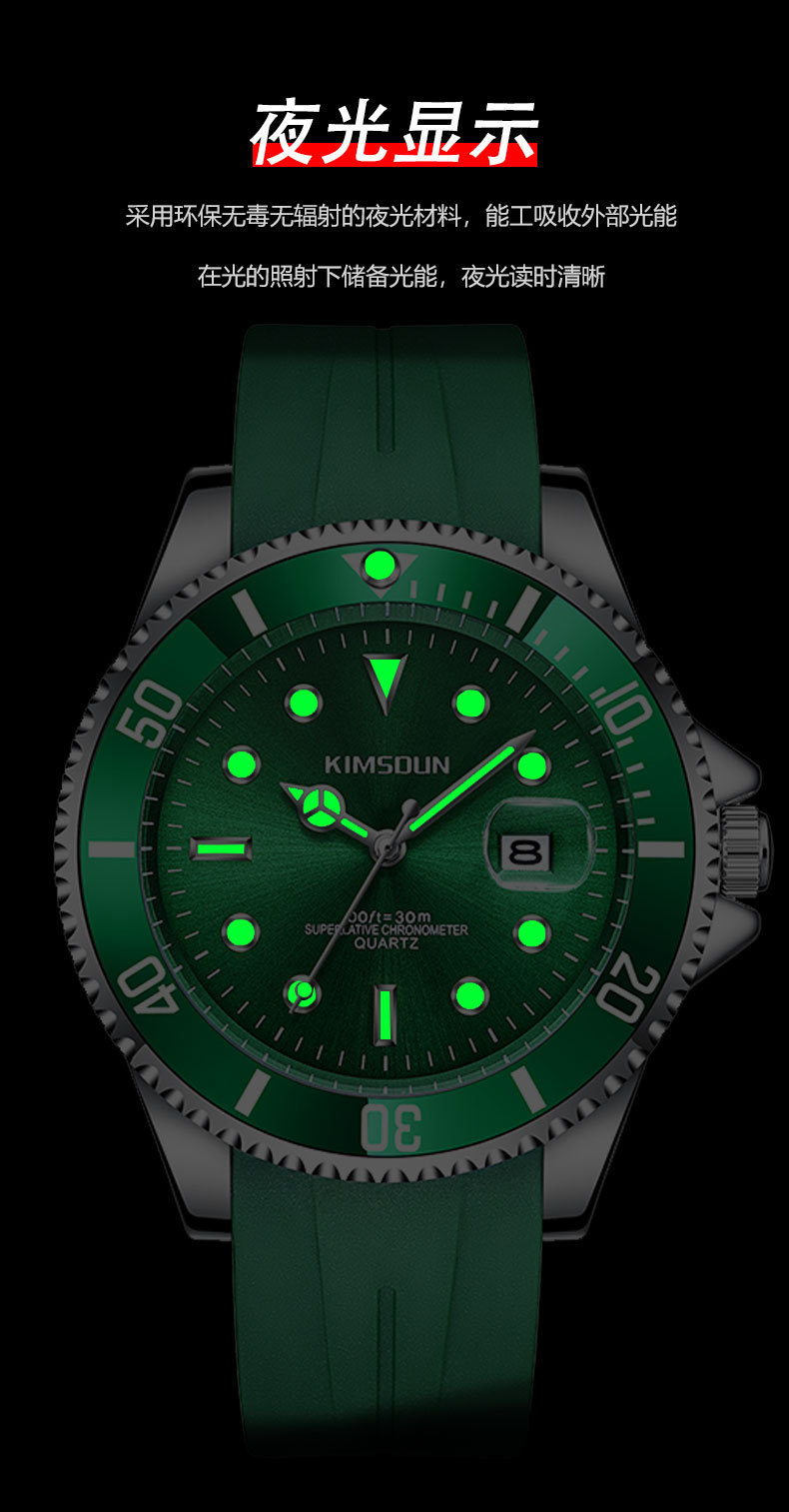 Fantasma de agua negro y verde transfronterizo reloj de marca dorada SHIDUN reloj de cuarzo impermeable luminoso reloj de hombre