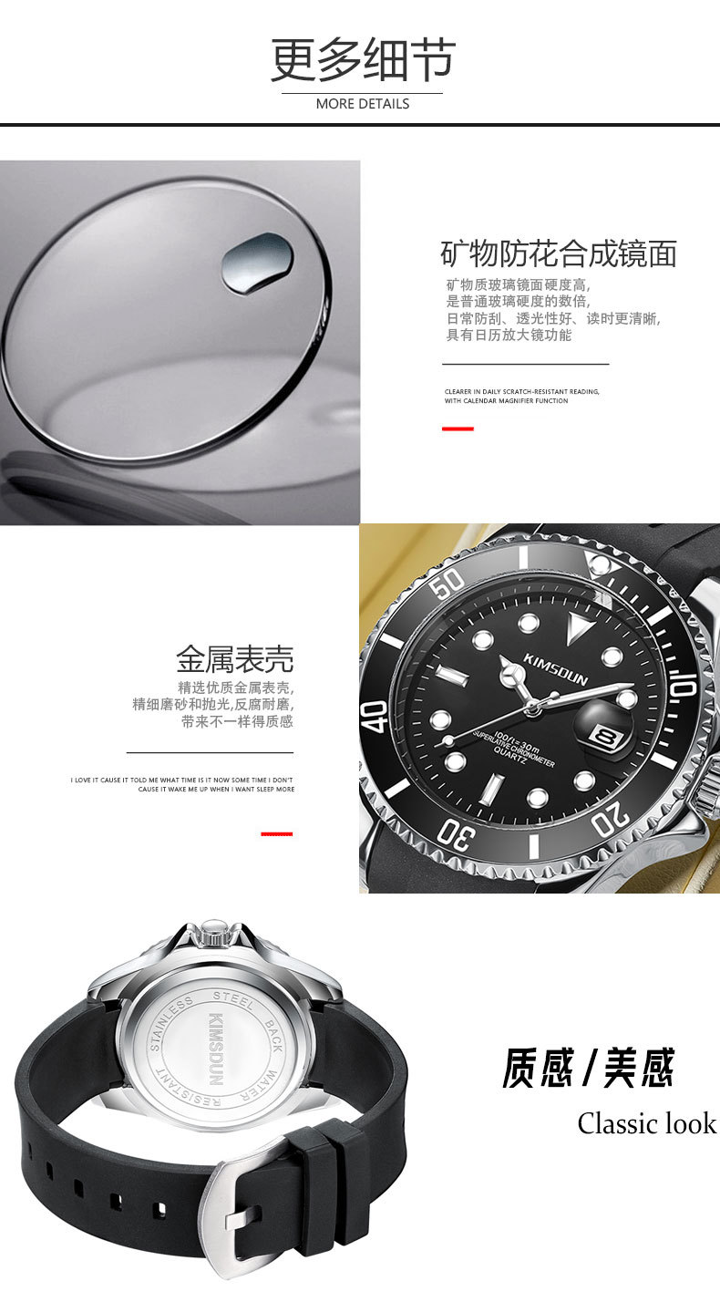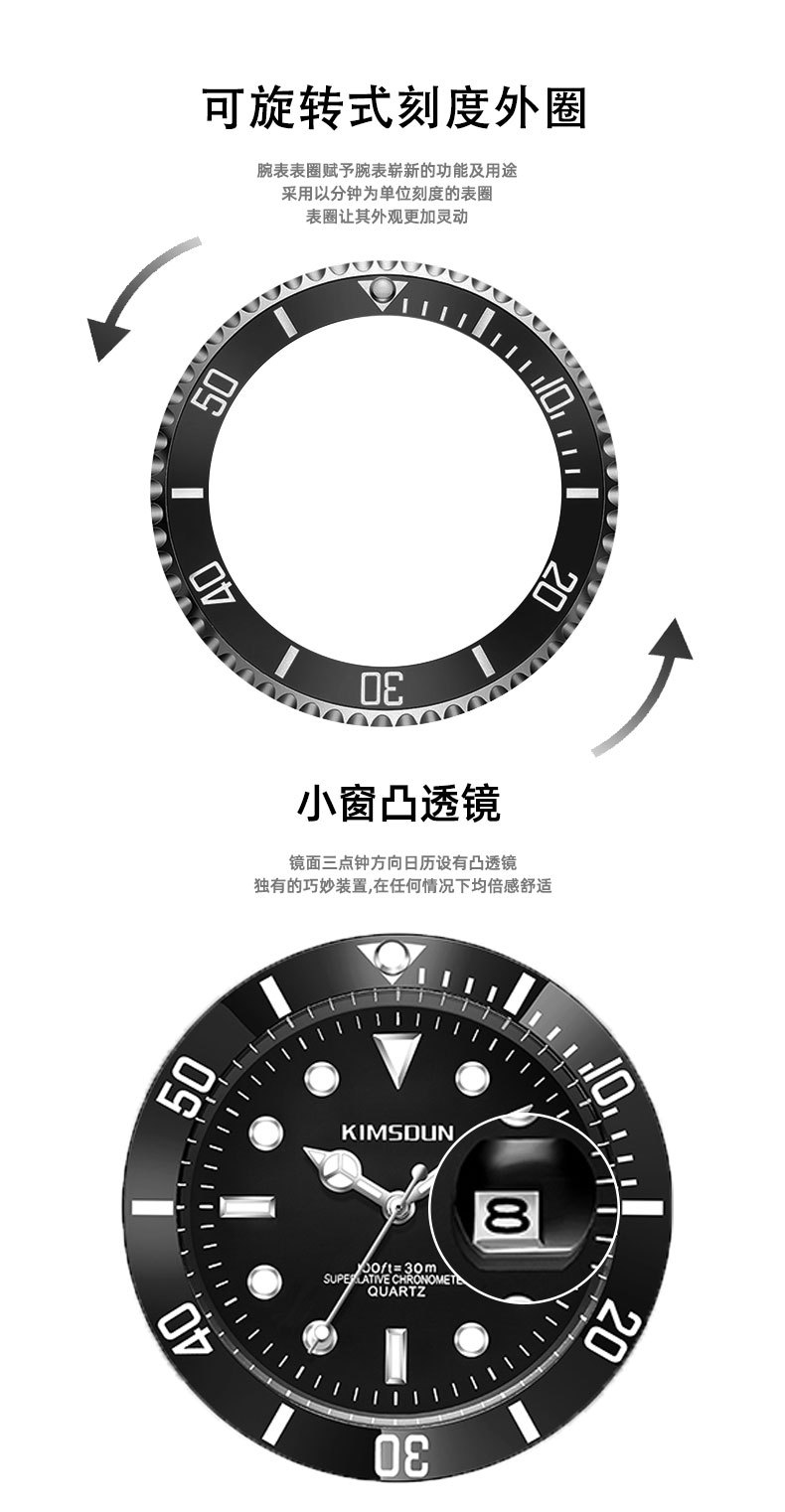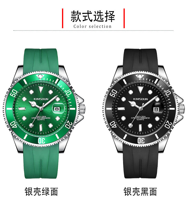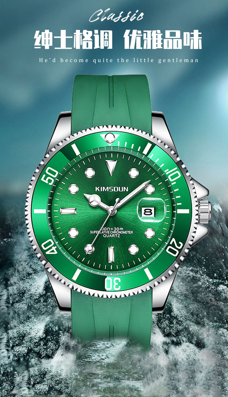 Fantasma de agua negro y verde transfronterizo reloj de marca dorada SHIDUN reloj de cuarzo impermeable luminoso reloj de hombre