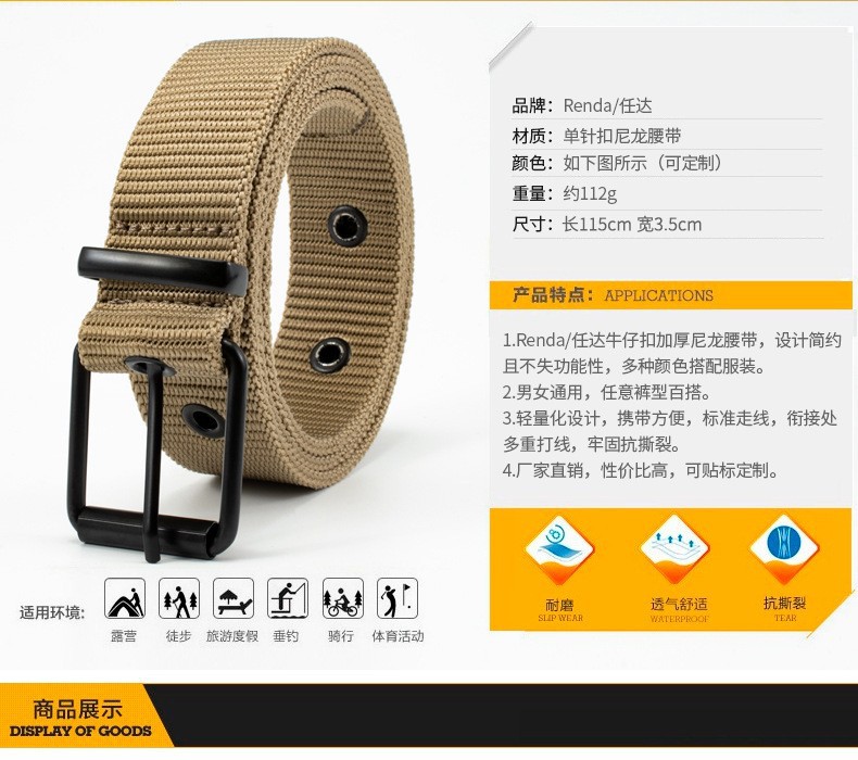 En stock cinturón al por mayor estudiante entrenamiento militar deportes al aire libre ocio cinturón pin hebilla moda todo-fósforo de los hombres de nylon cinturón