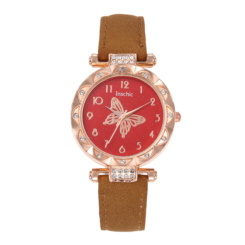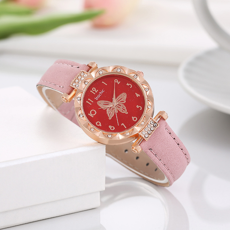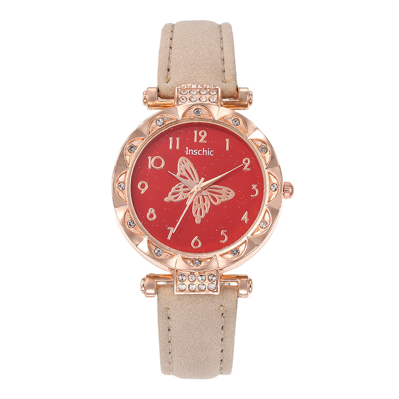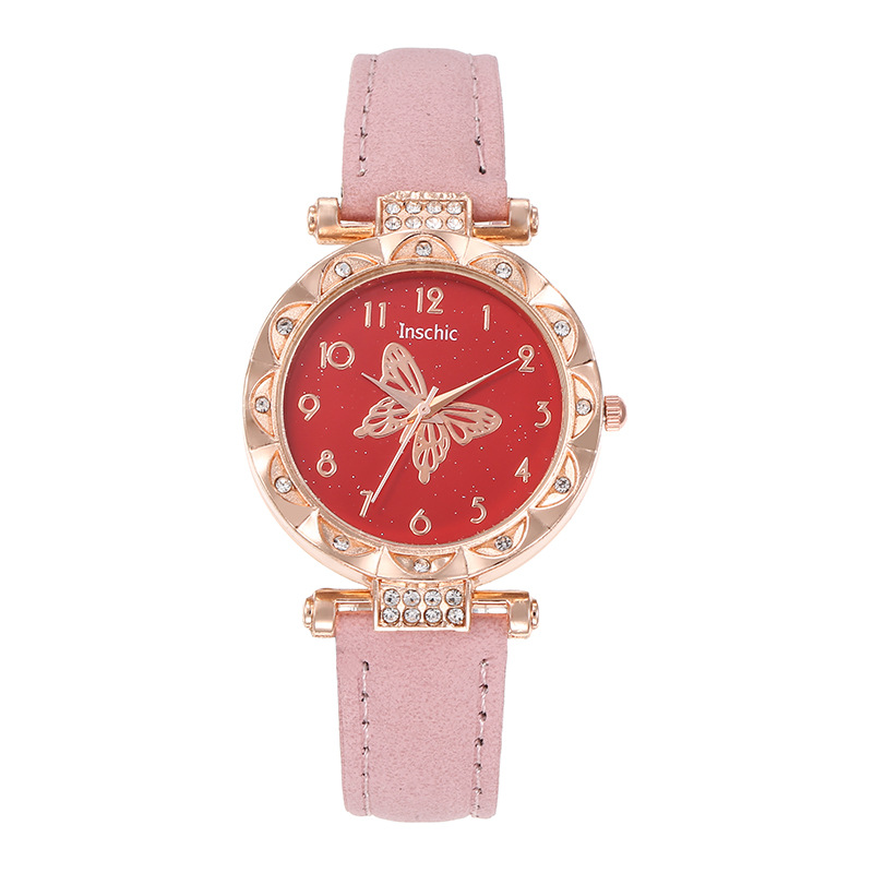 Nueva moda de mujer popular personalizada simple reloj de mujer estudiante versátil diamante mariposa dial reloj de cuarzo