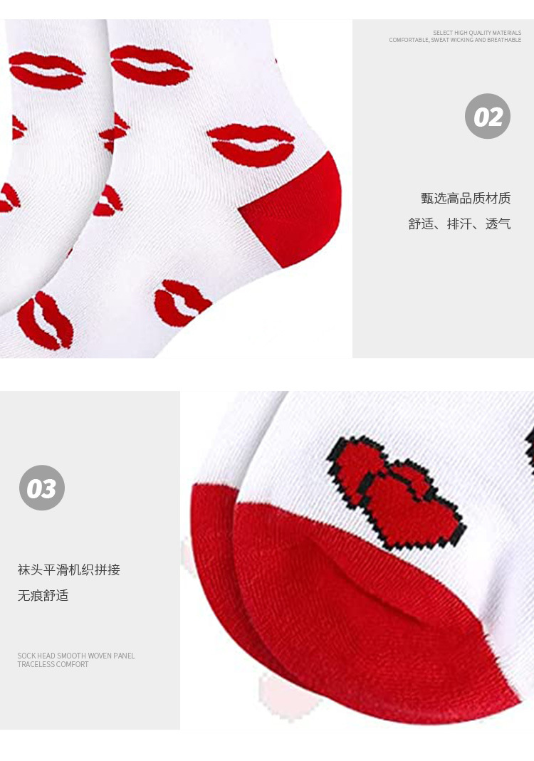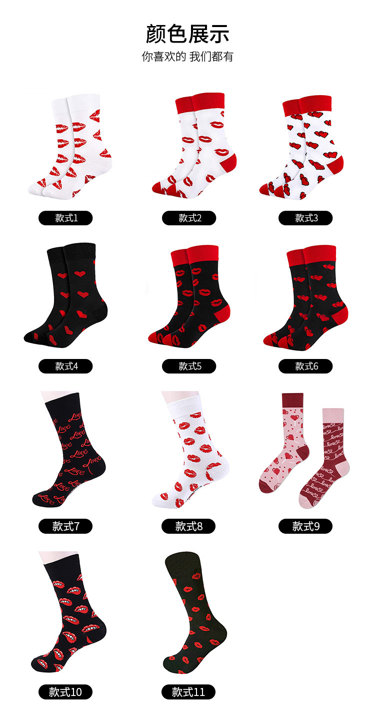 Calcetines transfronterizos del día de San Valentín calcetines de tubo de color de contraste de amor Valentine's Day amantes de los calcetines de algodón fabricantes