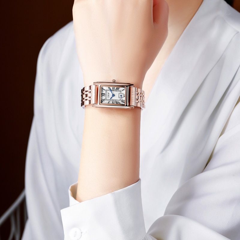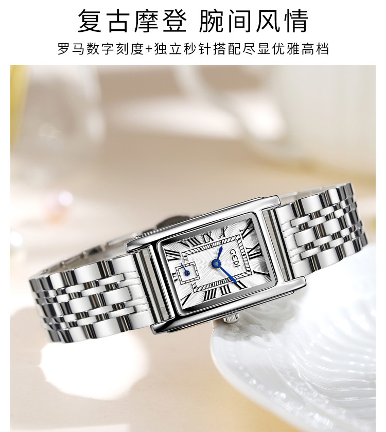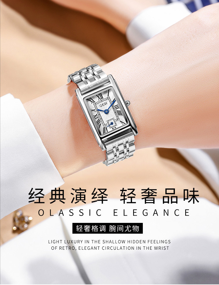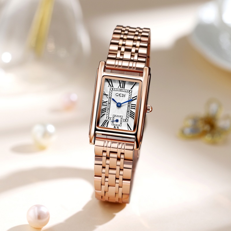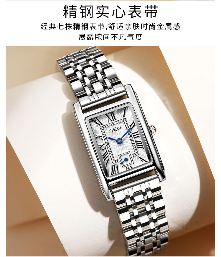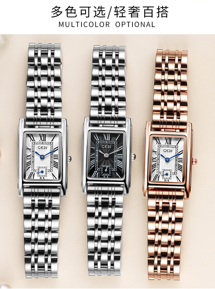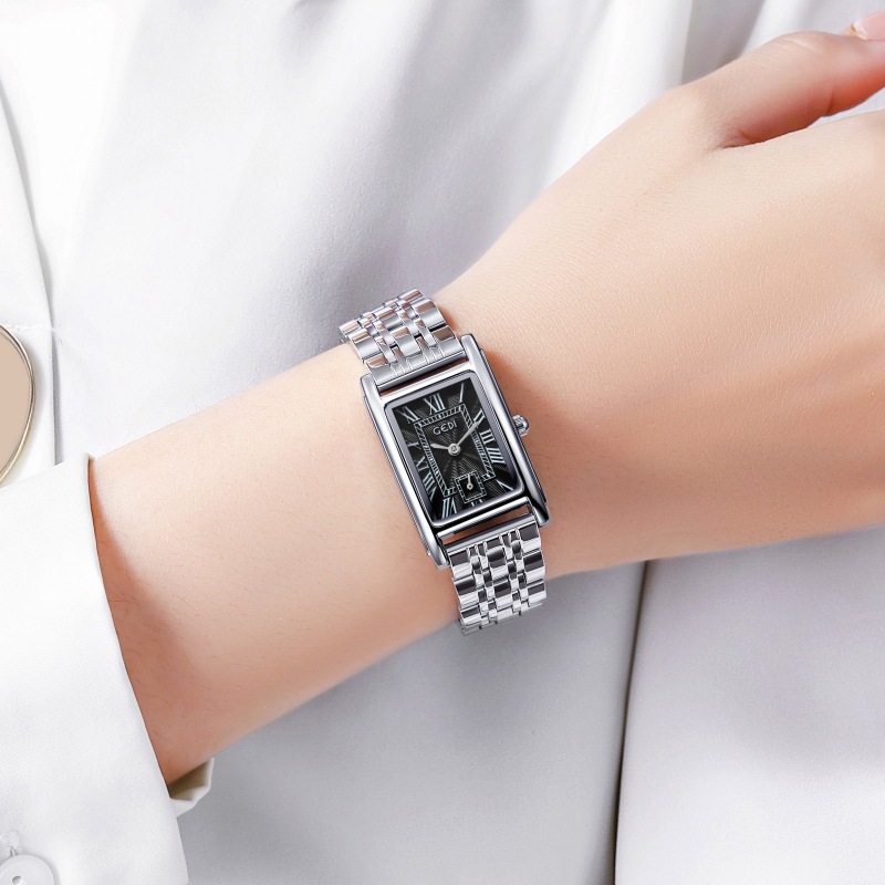 Gedi creativo independiente segunda mano luz lujo escala romana pequeña placa cuadrada impermeable cuarzo Acero inoxidable reloj Mujer