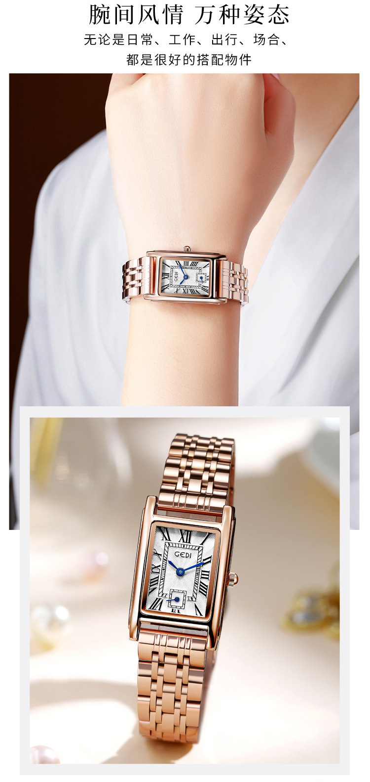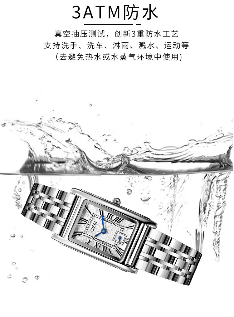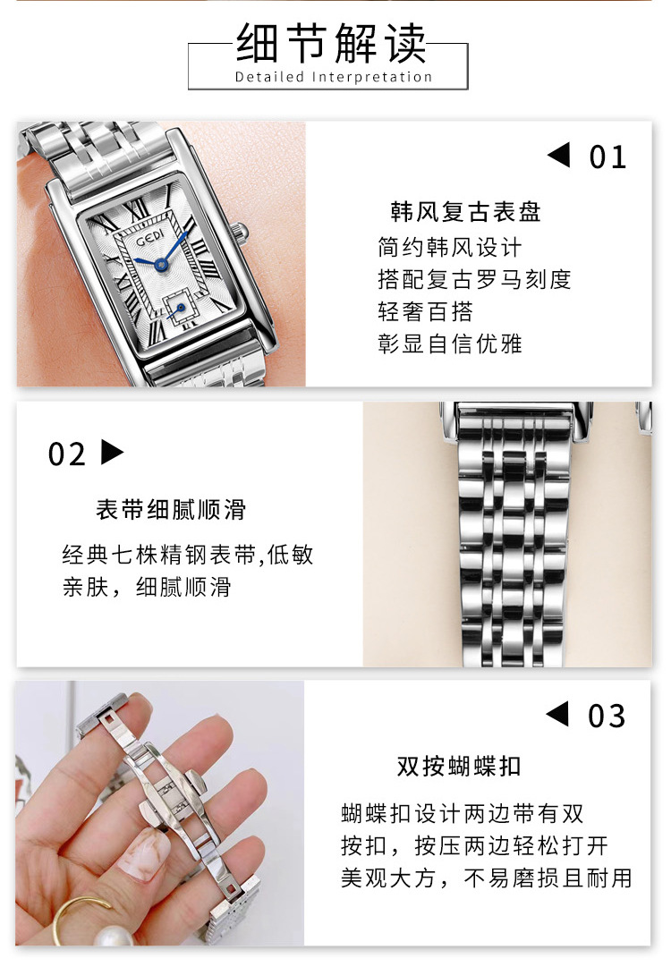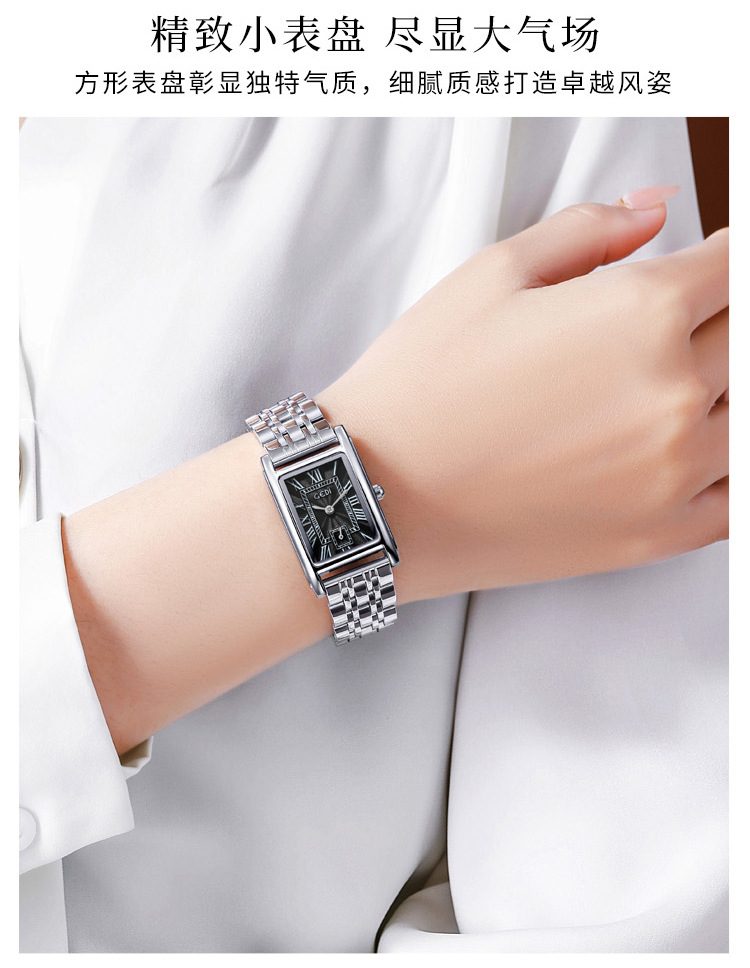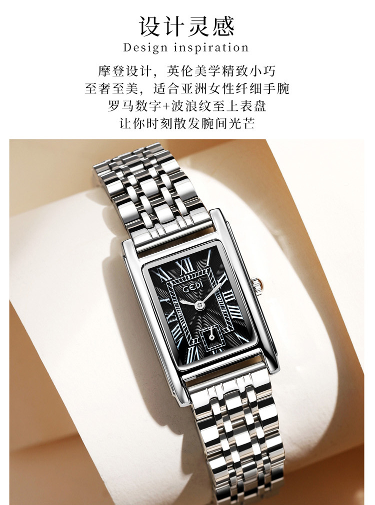 Gedi creativo independiente segunda mano luz lujo escala romana pequeña placa cuadrada impermeable cuarzo Acero inoxidable reloj Mujer