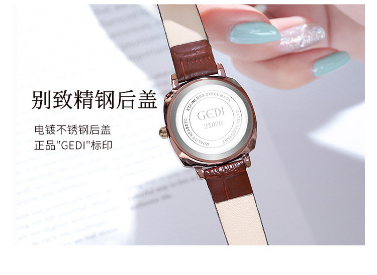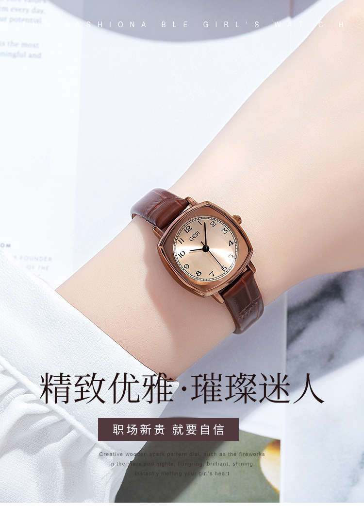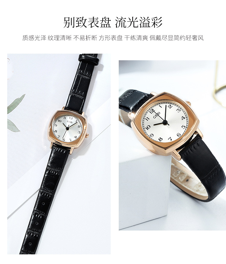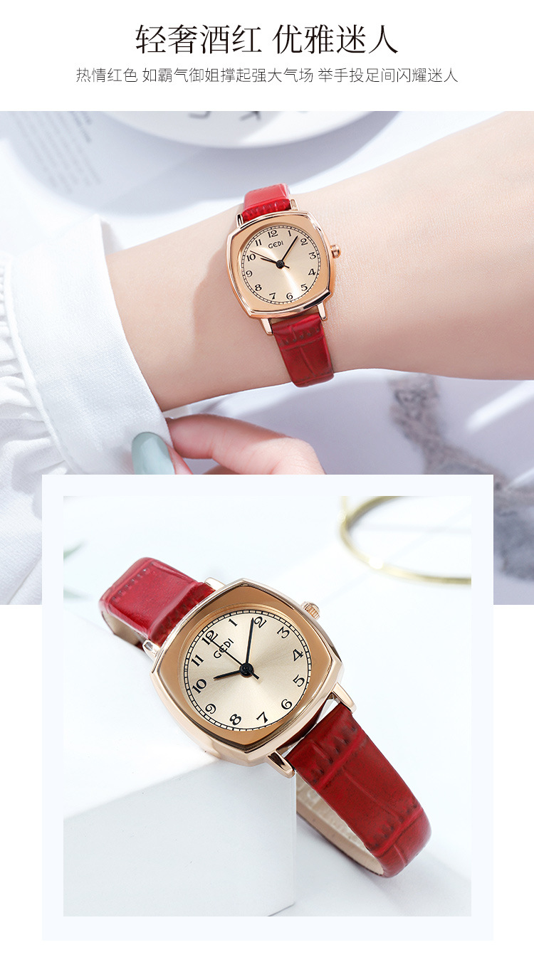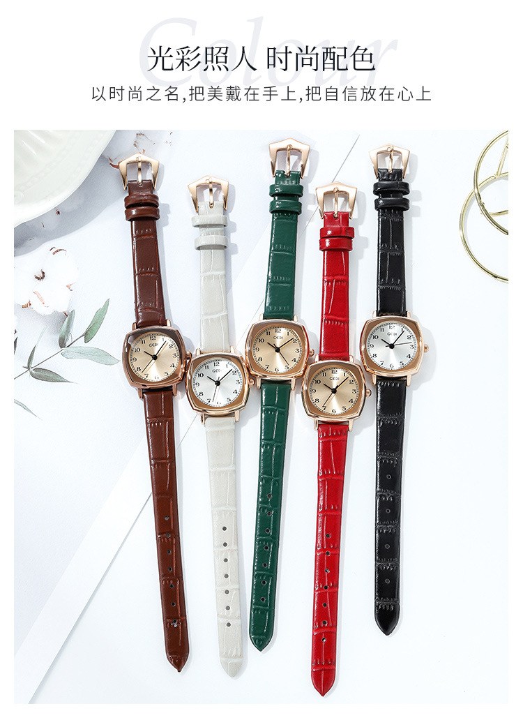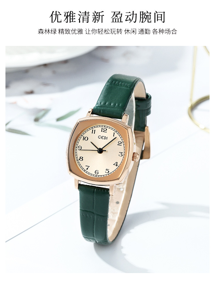 Gedi chic retro cuadrado pequeño dial estilo coreano simple moda cinturón estudiante reloj de cuarzo