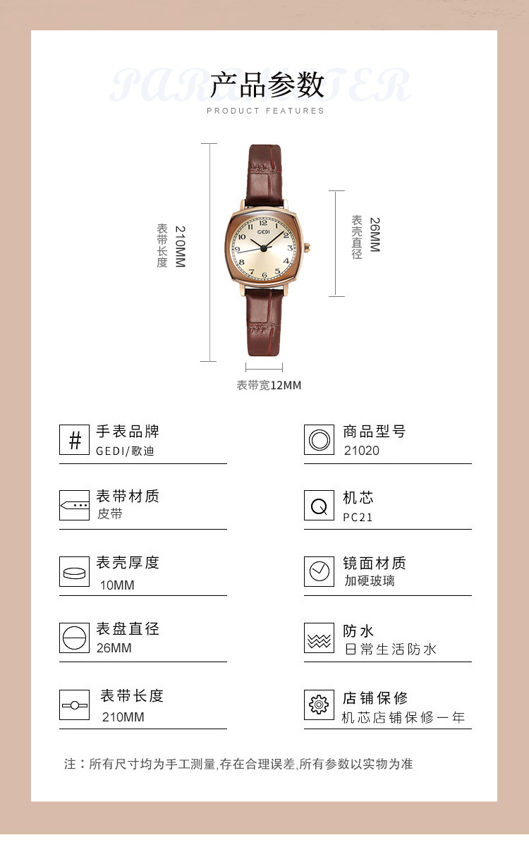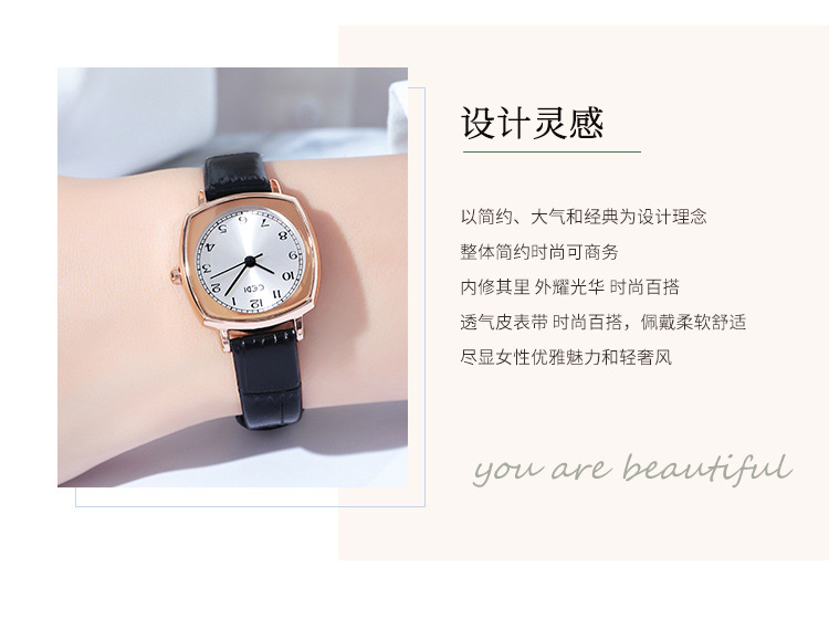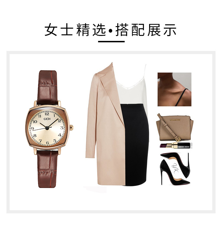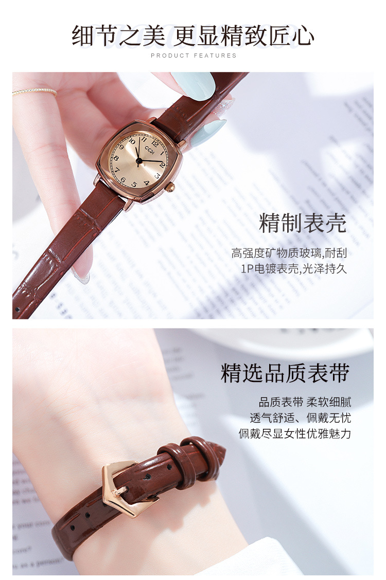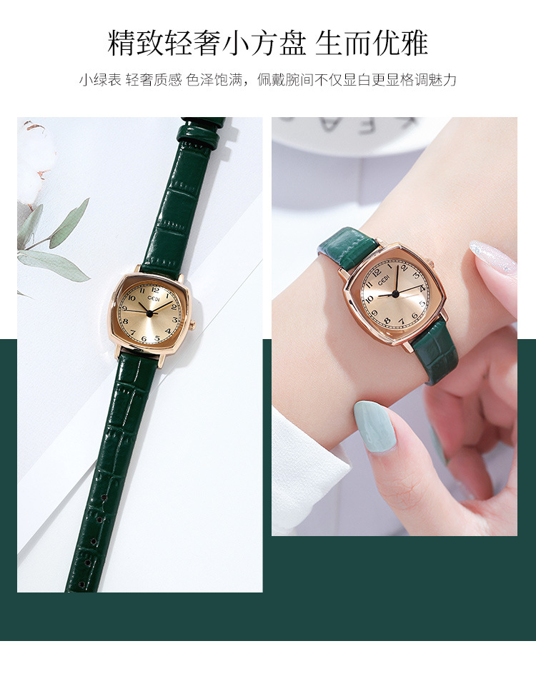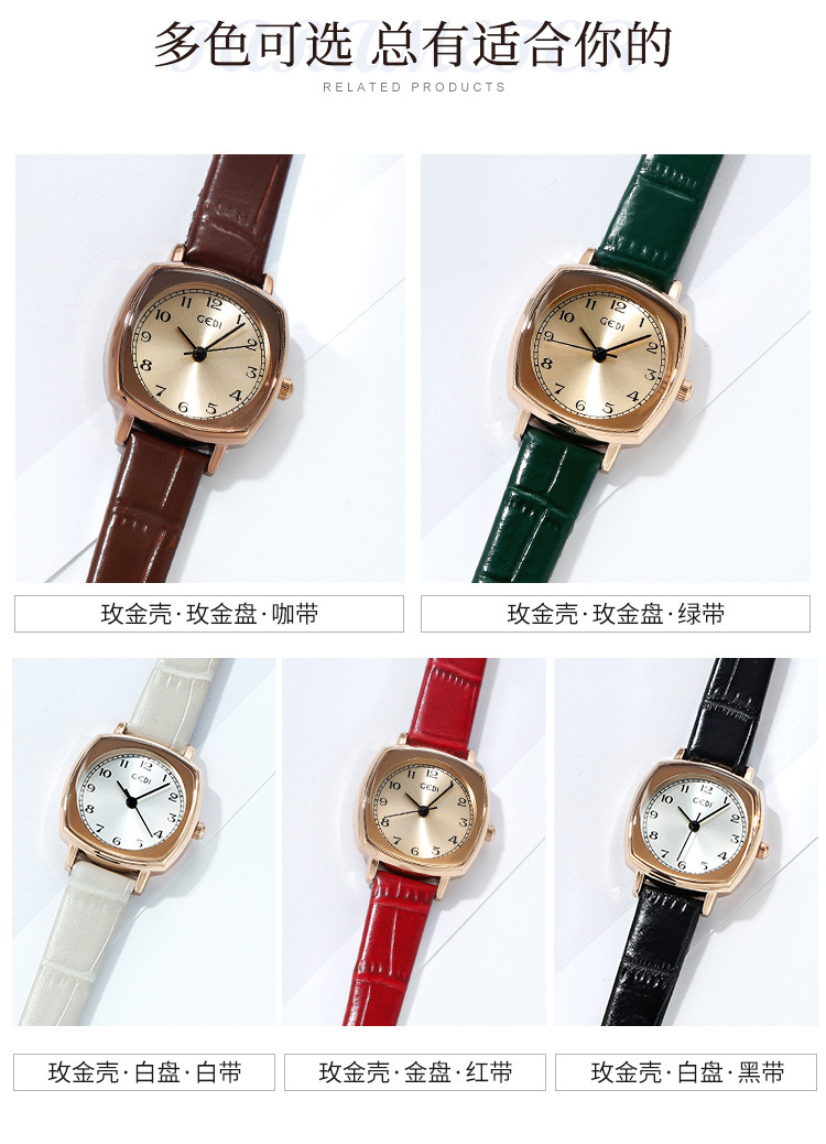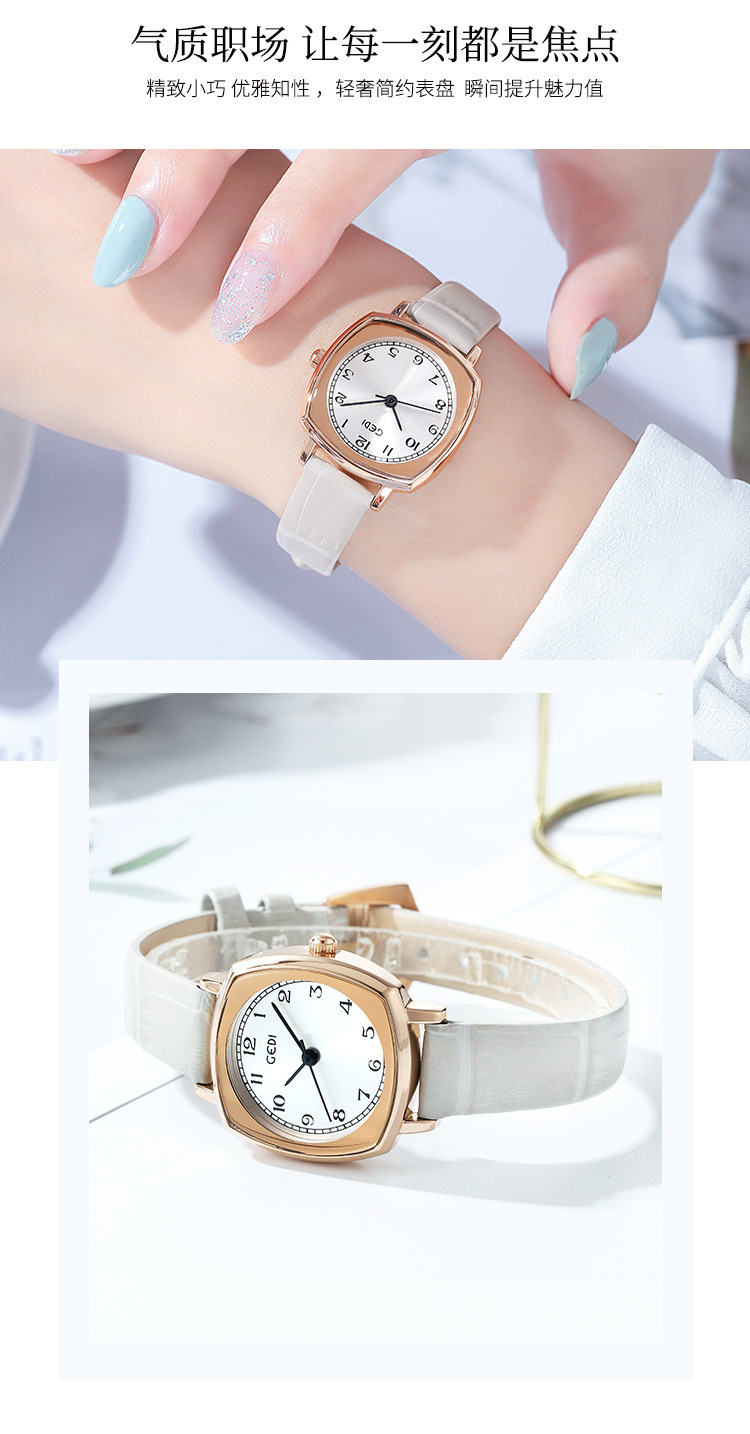 Gedi chic retro cuadrado pequeño dial estilo coreano simple moda cinturón estudiante reloj de cuarzo