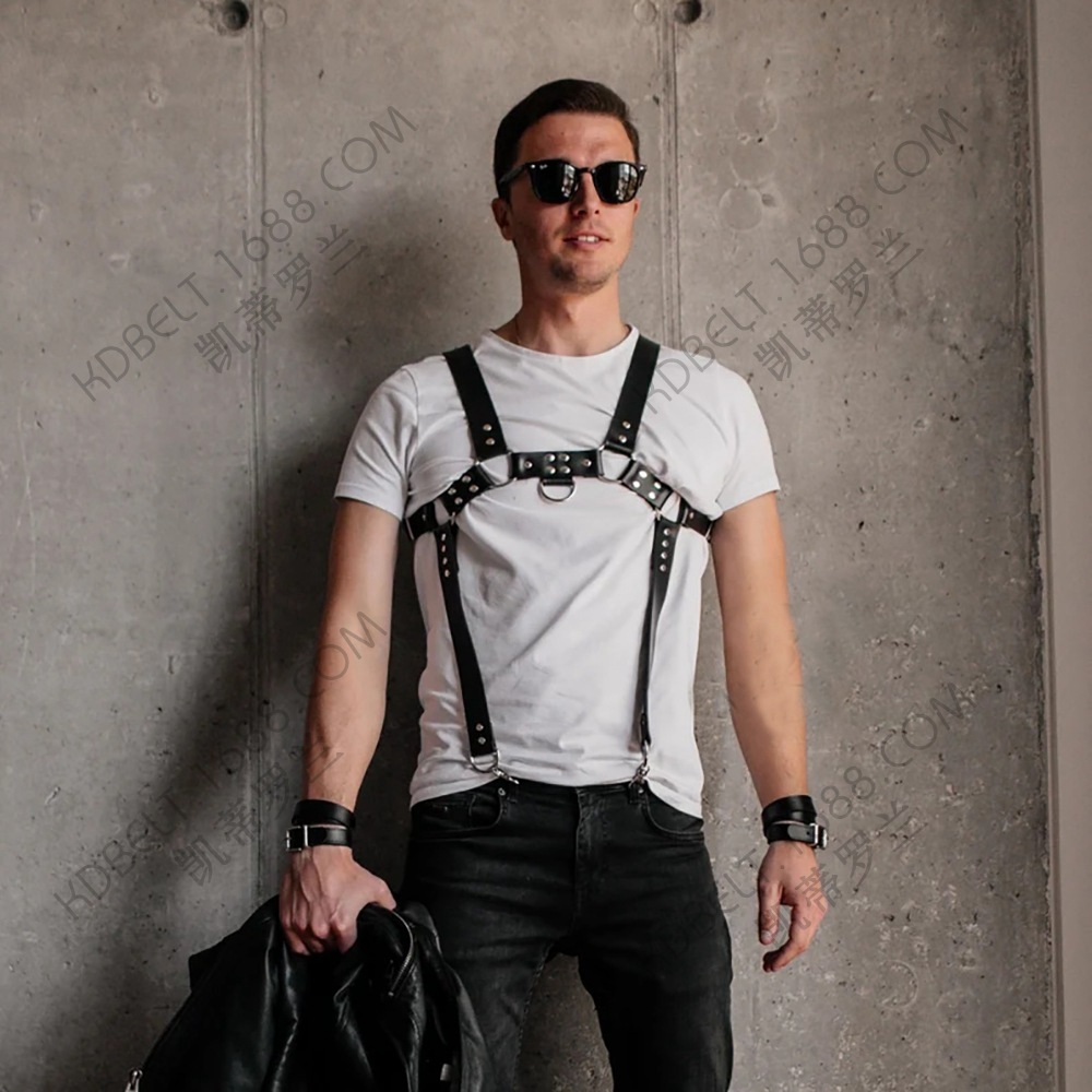 Correa de hombro para adultos transfronteriza ropa de cuero vinculante para hombres correa de cuerpo de PU tirantes de ropa alternativa de vestir para hombres poderosos