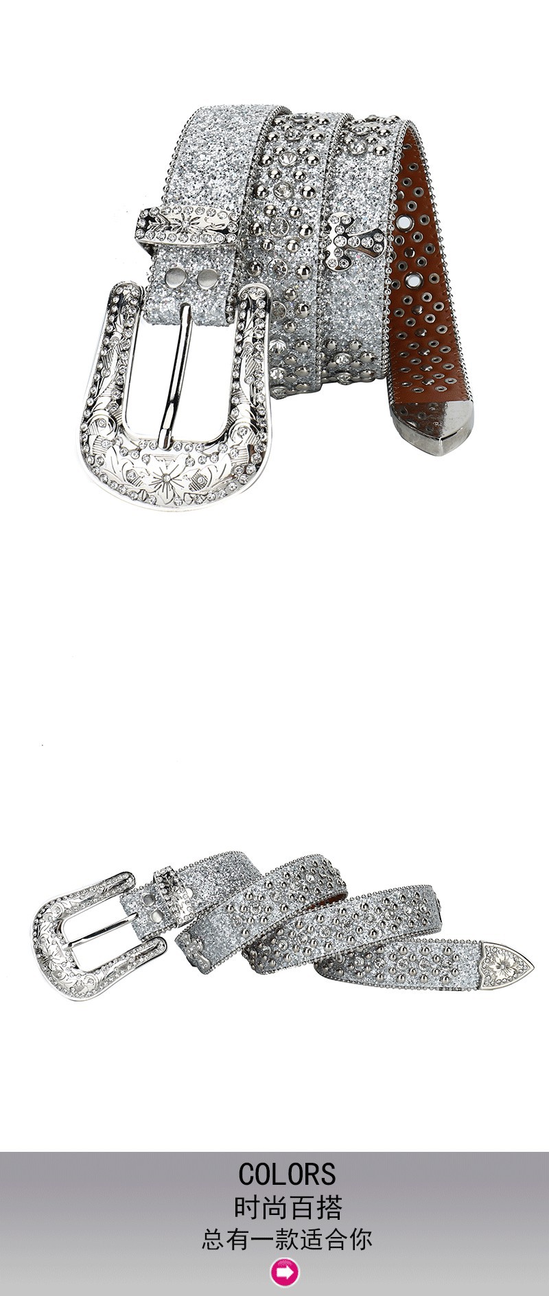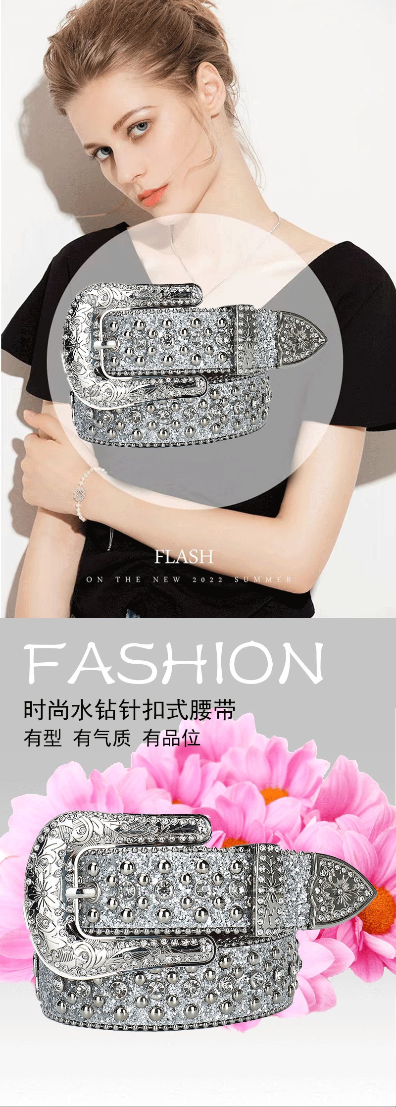 Correa de diamantes de imitación de destello de plata transfronteriza europea y americana Correa de mujer con incrustaciones de diamantes de imitación completa tendencia de la personalidad de la moda de las mujeres al por mayor