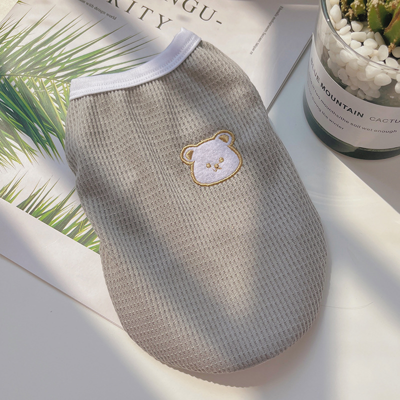 Primavera y verano nuevo tres colores waffle oso chaleco mascota lindo bordado de dibujos animados chaleco perro gato ropa