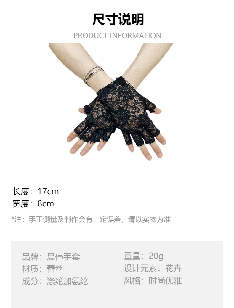 Protección solar sin dedos nupcial encaje medio dedo guantes de mujer corto floral guantes para boda ópera fiesta de té