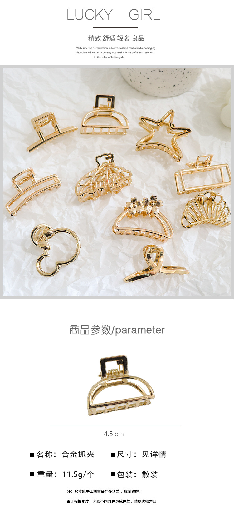 Clip de pelo metálico, estilo Corea del Sur, clip trasero, pequeño, tocado de moda