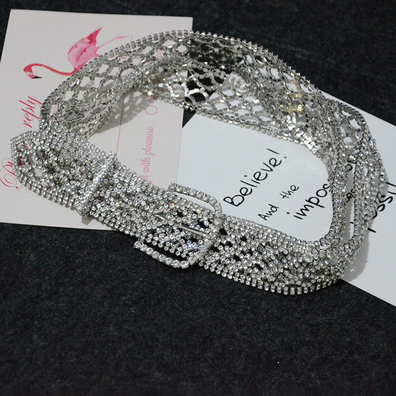 Comercio exterior transfronterizo Cinturón de mujer con incrustaciones de diamantes de imitación cinturón decorativo completo de mujer falda decorativa casual cinturón de diamantes borla