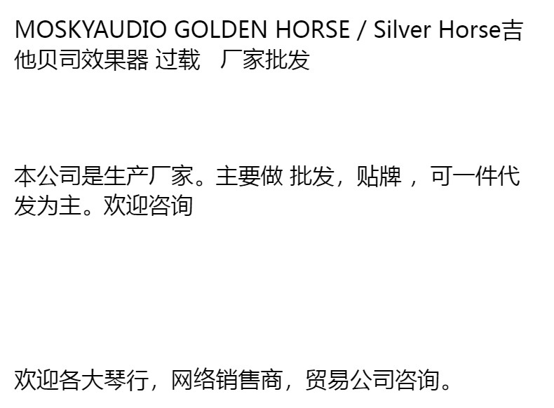 Mosky efecto de guitarra efecto sobrecarga CABALLO DE PLATA/CABALLO DE ORO fábrica al por mayor