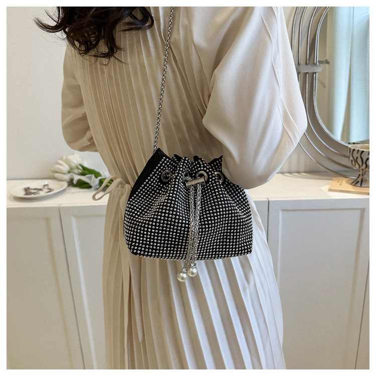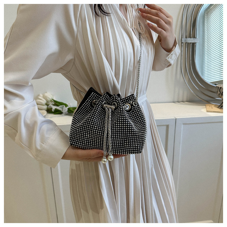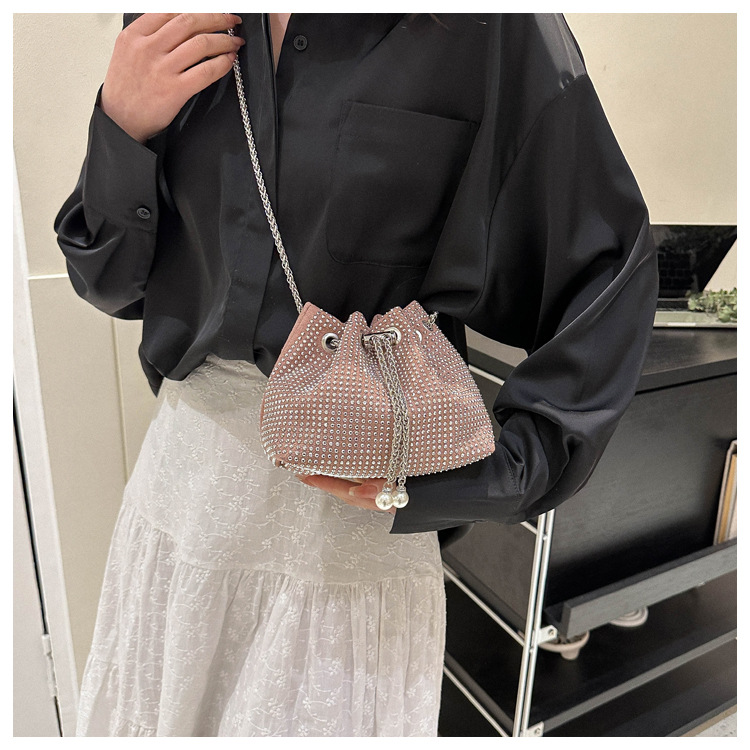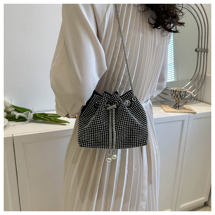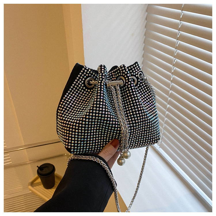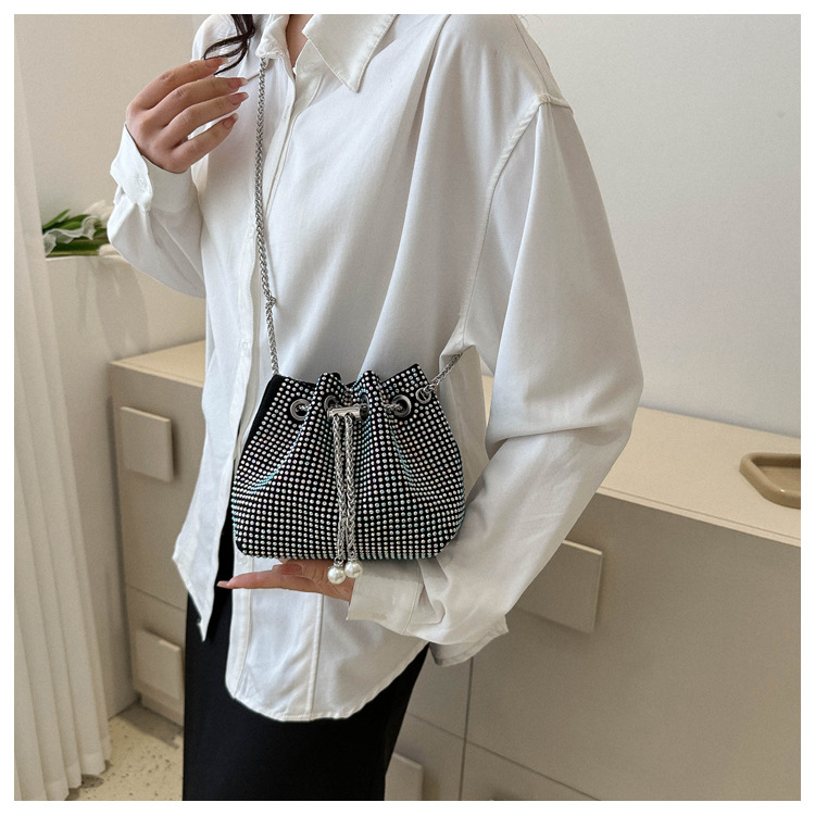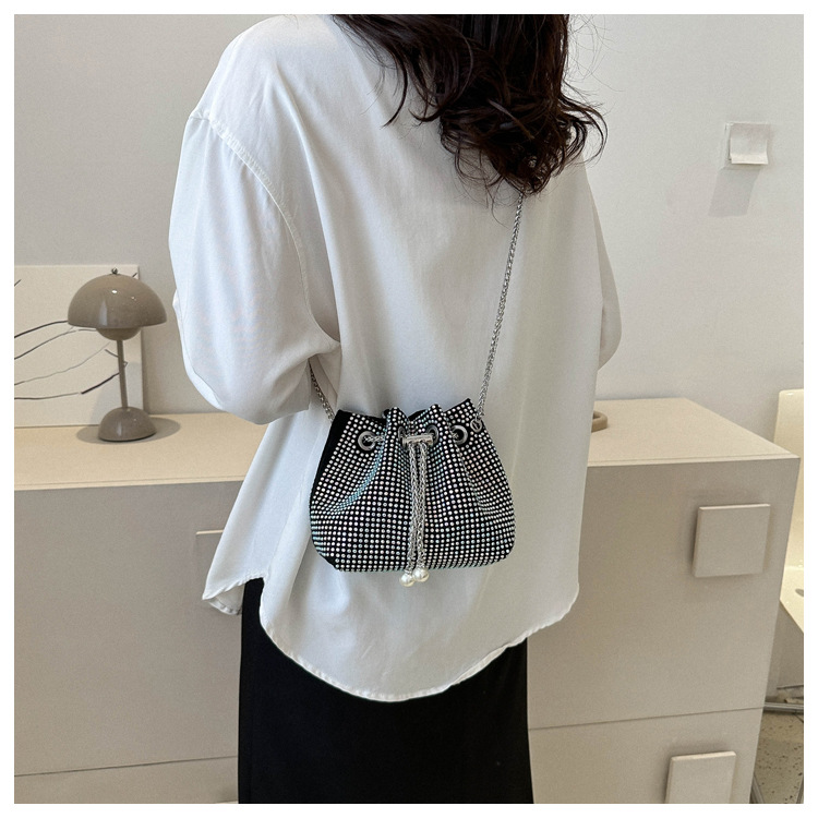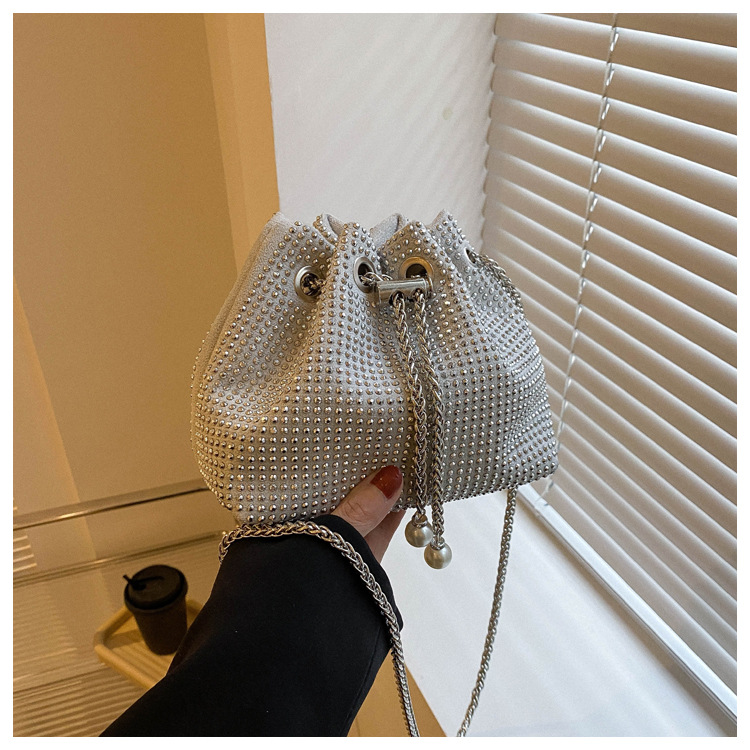 Moda de moda pequeña bolsa para mujeres 2023 primavera nuevo estilo coreano brillante diamante mensajero bolsa ins Internet celebridad cadena cubo bolsa
