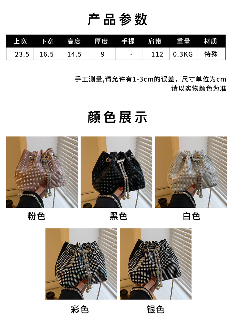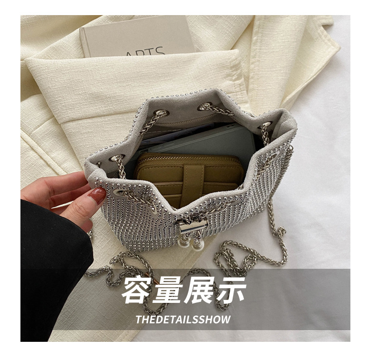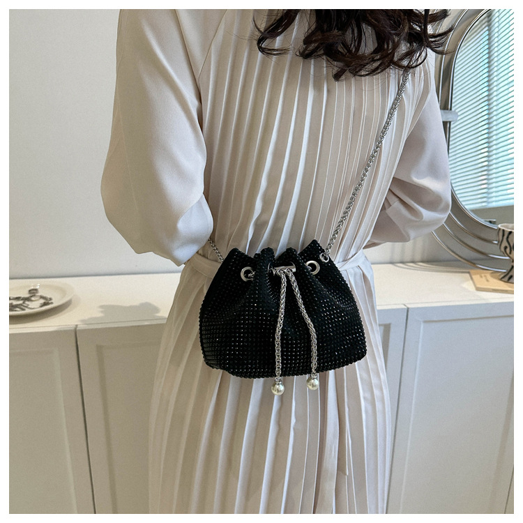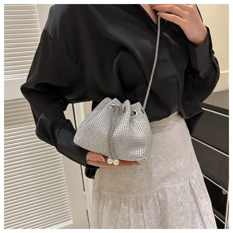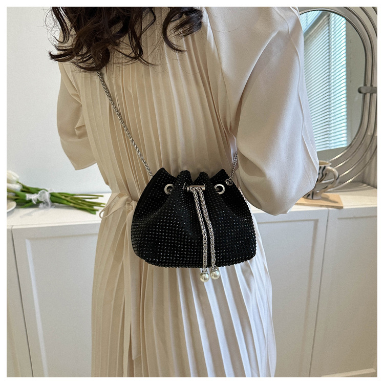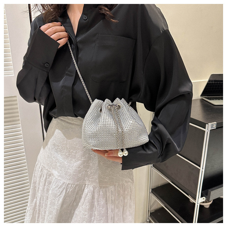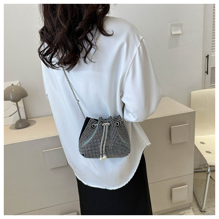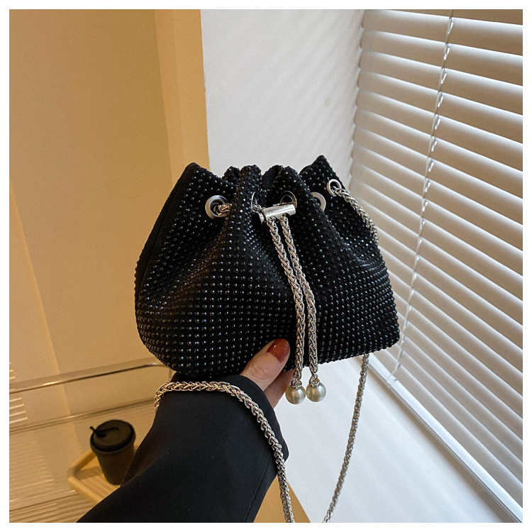 Moda de moda pequeña bolsa para mujeres 2023 primavera nuevo estilo coreano brillante diamante mensajero bolsa ins Internet celebridad cadena cubo bolsa