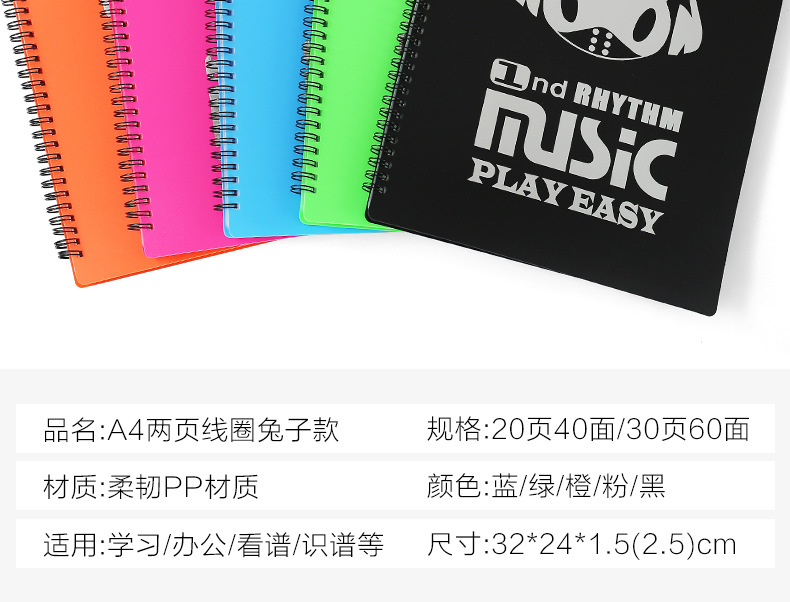 Música conejo Modificación de piano clip de partitura de música estudiante de música A4 archivo carpeta bolsa 40 páginas 60 páginas