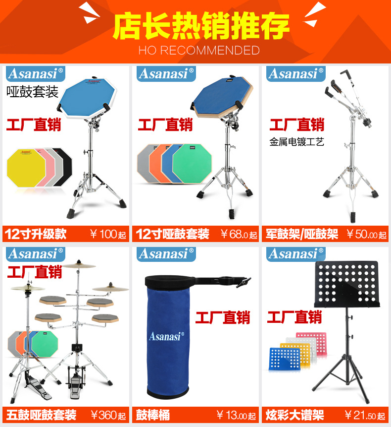Ventas directas de fábrica, tambor asiático, tambor mudo de 12 pulgadas, juego de tambor mudo, almohadilla de batería, soporte de entrada, batería, tablero de tambor mudo