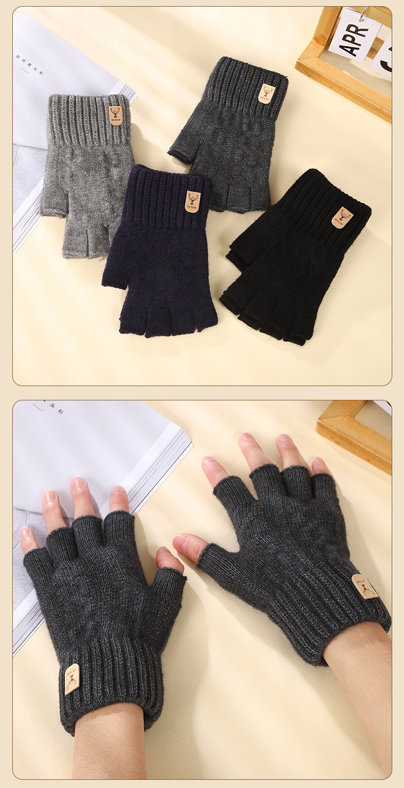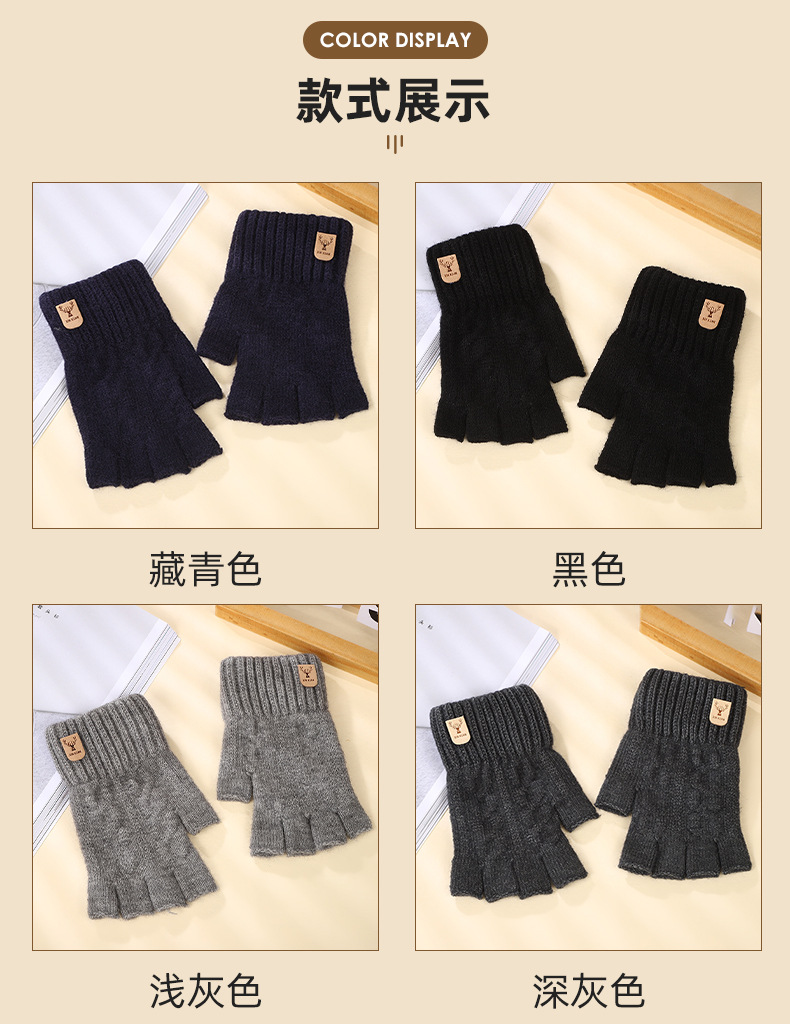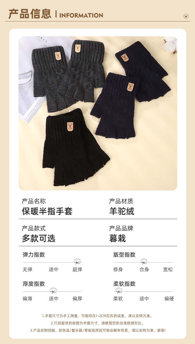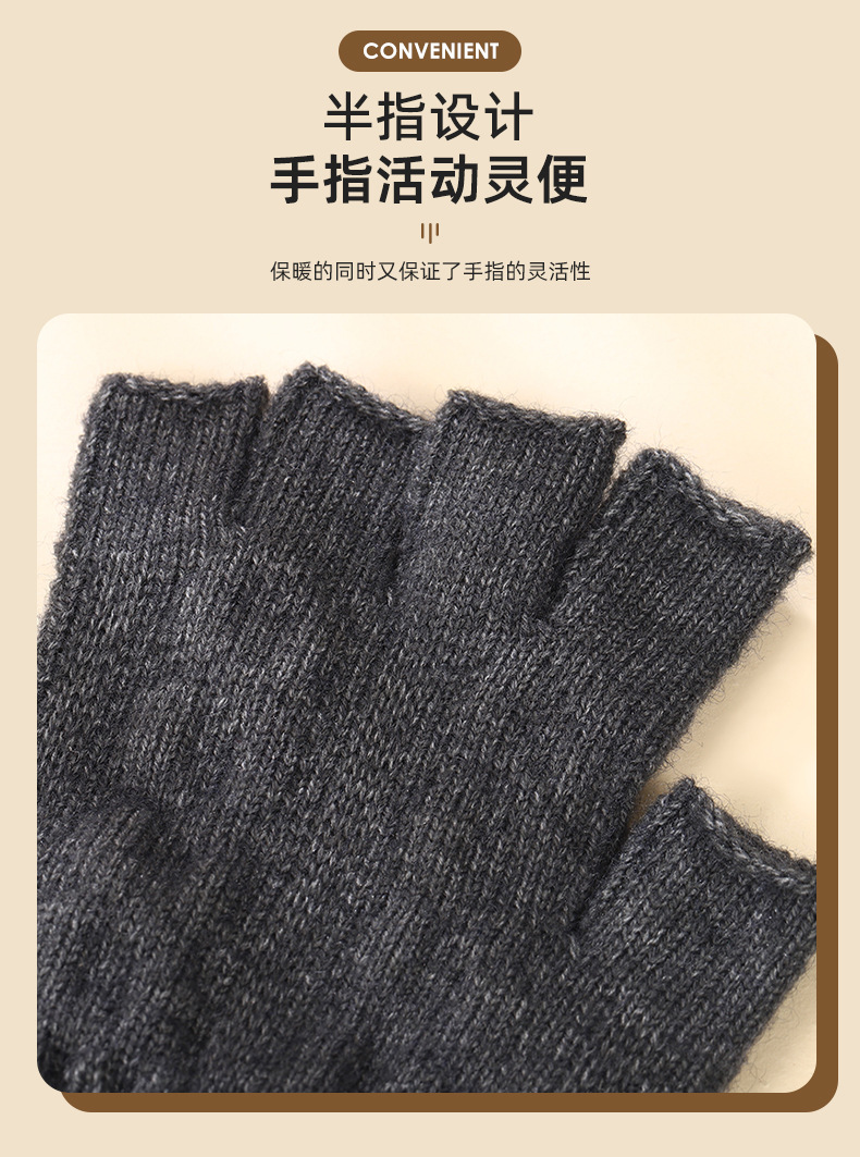 Primavera y otoño Cachemira completo medio dedo guantes al aire libre a prueba de viento caliente transpirable portátil estilo simple guantes