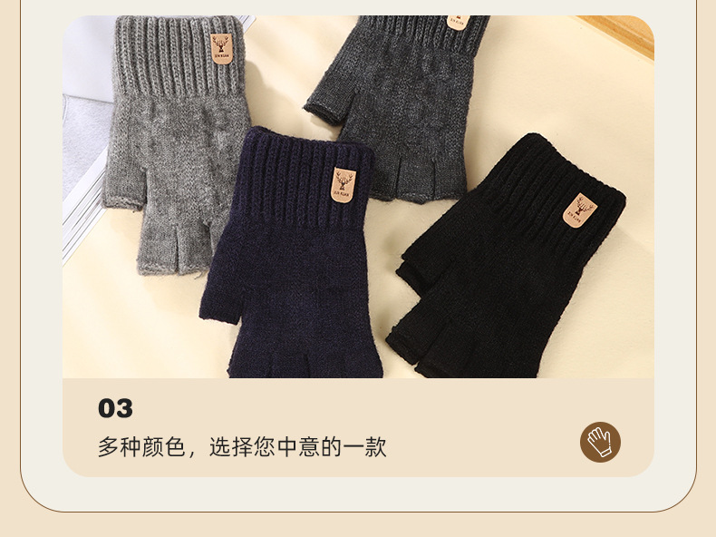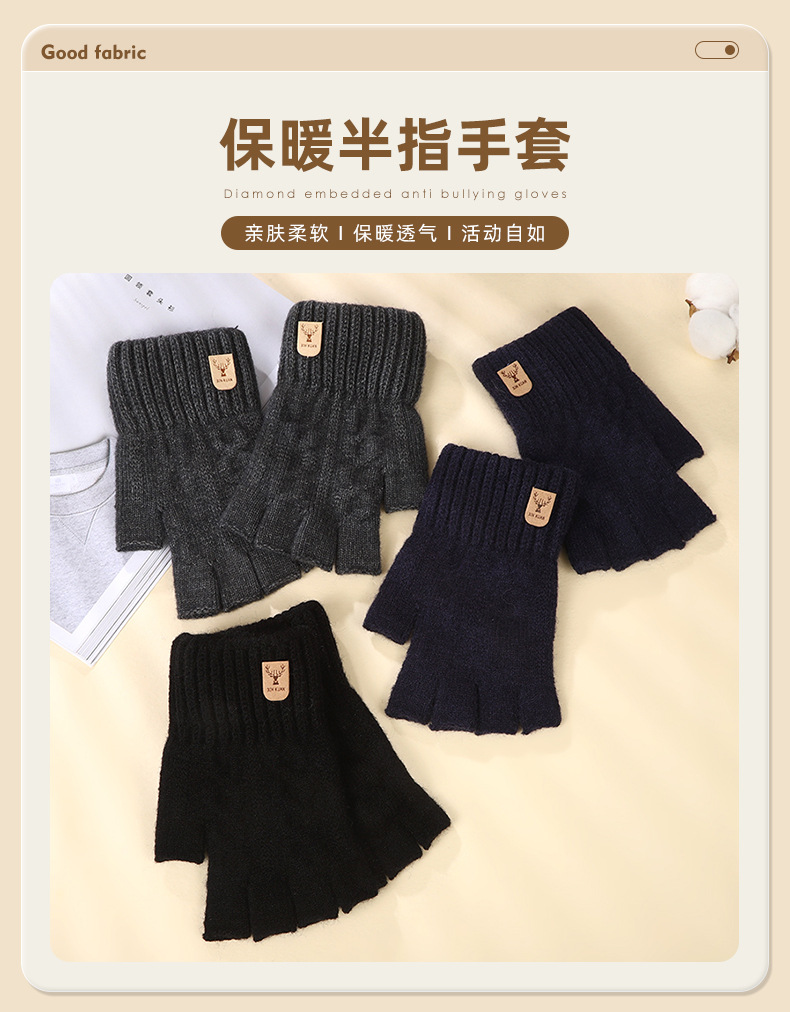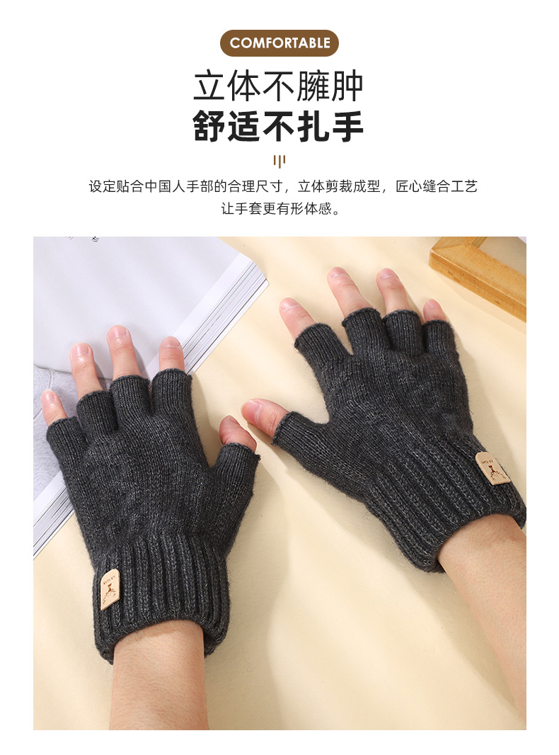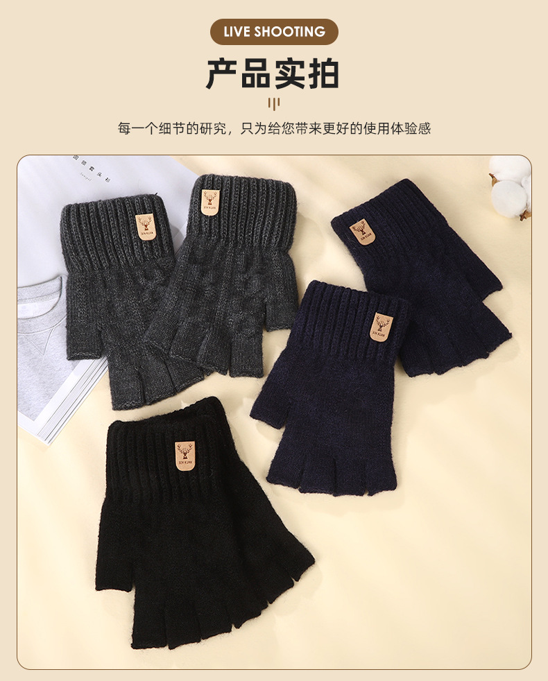 Primavera y otoño Cachemira completo medio dedo guantes al aire libre a prueba de viento caliente transpirable portátil estilo simple guantes