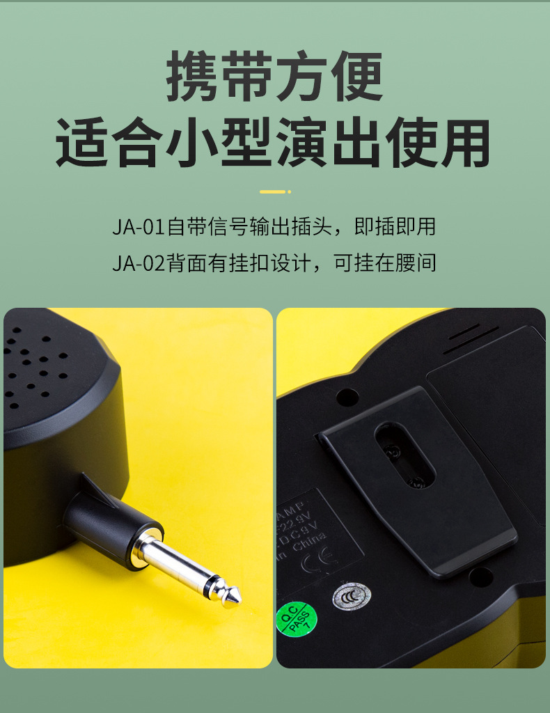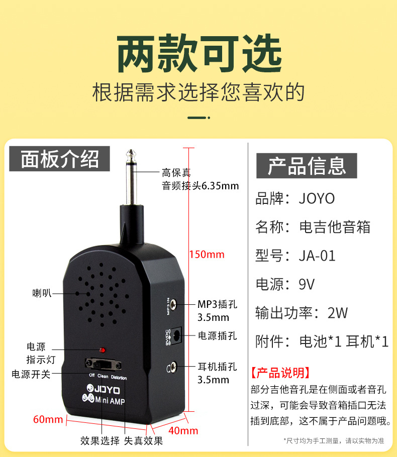 | Color | Guitarra JA-01 pequeño altavoz con batería + auricular original (se puede colocar fuera del efecto de distorsión del efecto de sonido es General),JA-02 pequeño altavoz de la guitarra con la batería (distorsión de calidad de sonido es mejor con efecto bajo) |