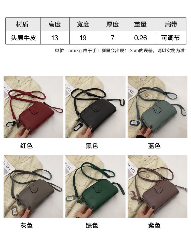 2023 nueva primera capa de piel de vaca hombro bolsa de mensajero de las mujeres bolsa de teléfono móvil de la moda casual todo partido de cercanías transfronteriza comercio exterior