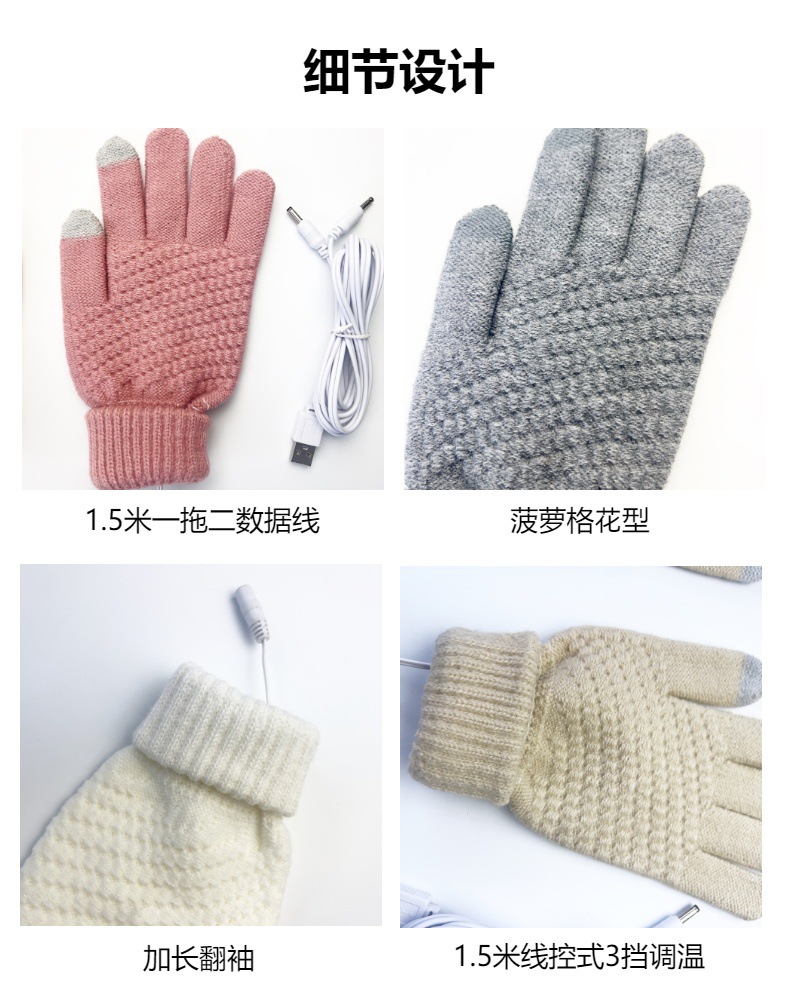 A cuadros de manga larga invierno pantalla táctil térmica suministro directo de fábrica Guantes eléctricos USB exclusivos transfronterizos 5-Dedo de punto de piña