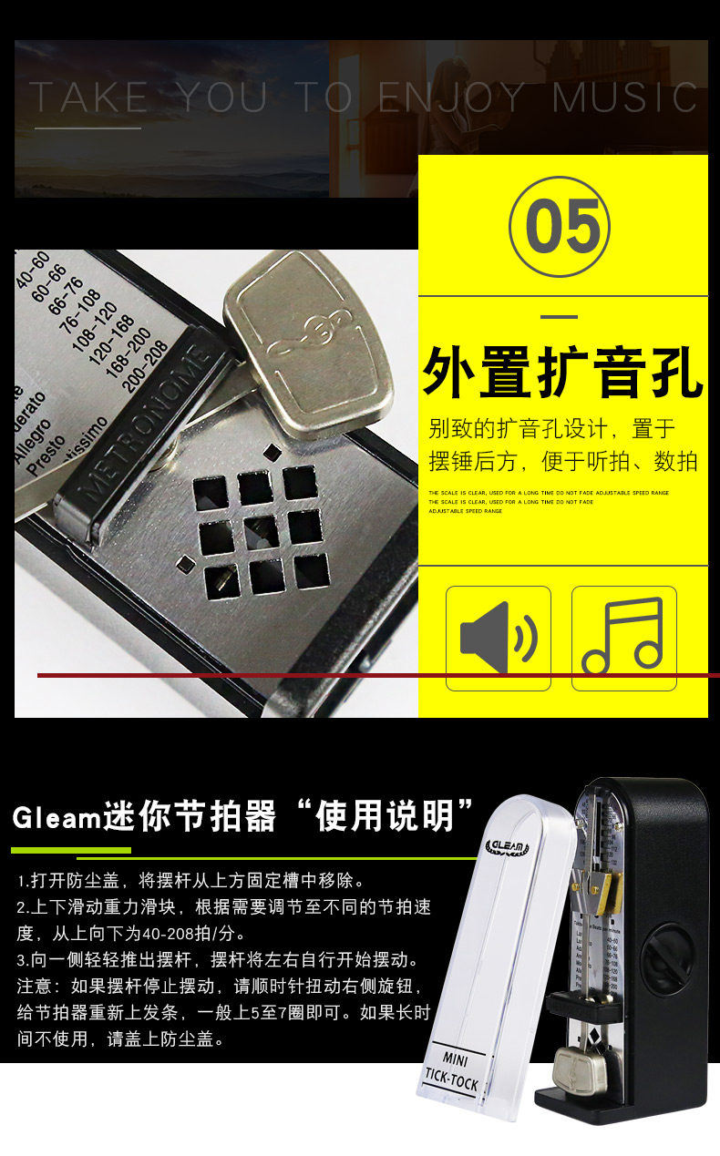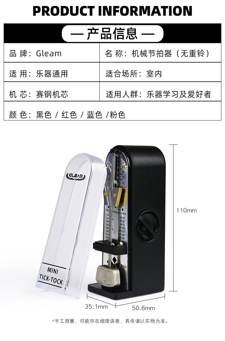 Gleam mini mecánico metrónomo piano guitarra tubo música violín portátil clasificación especial